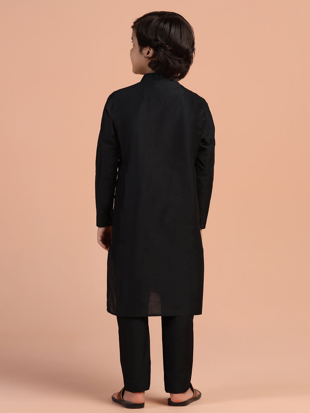Classic black cotton blend kids kurta pyjama set – simple, elegant, and perfect for festive or traditional occasions.