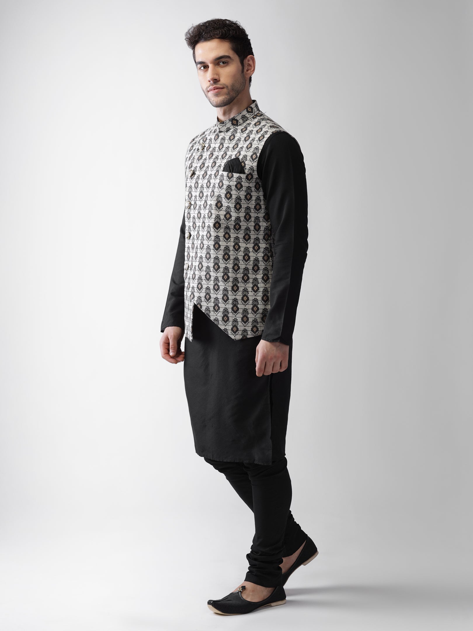 The Kisah kurta Jacket Sets is ideal for men looking for stylish yet comfortable attire. Crafted from Cotton Blend fabric, Grey, stylish Printed pattern, and comfortable fit make it perfect for festive wear.
