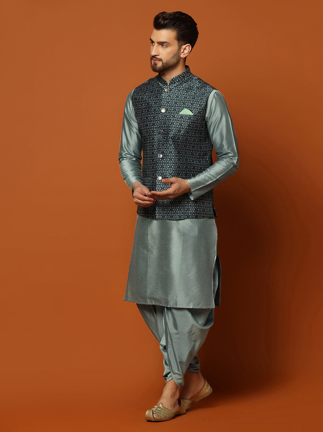 Experience classic elegance with this Set. The breathable Cotton Blend fabric with Woven Design Patternn ensures comfort throughout the day. Ideal for festive events or casual wear.