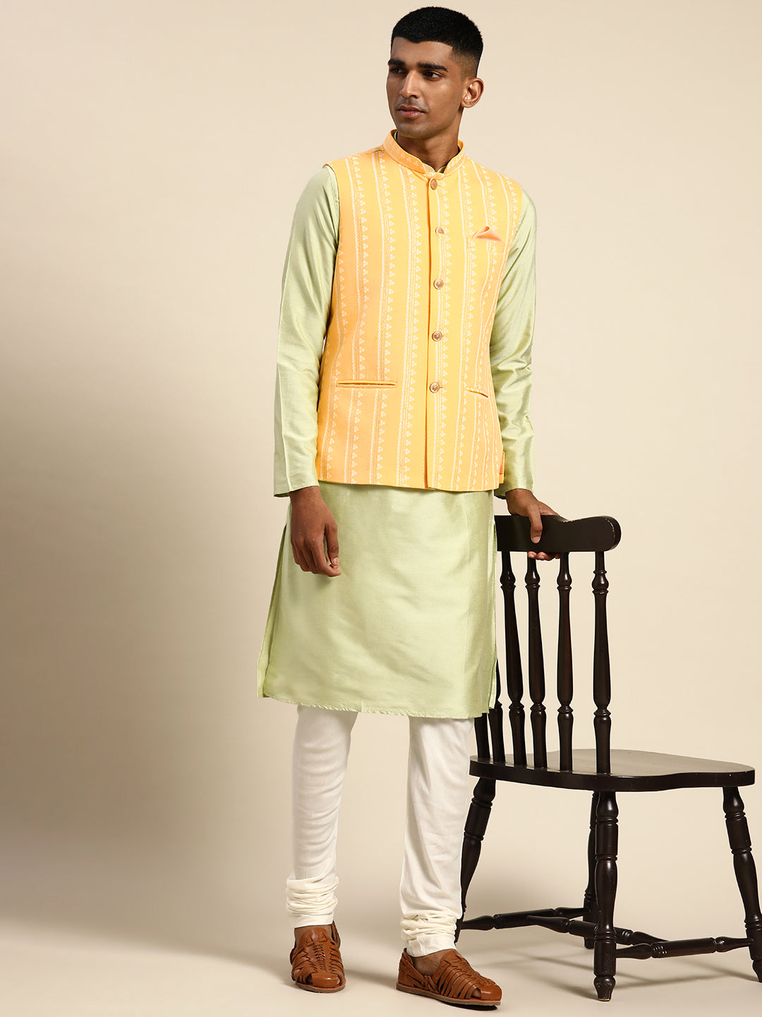 This Kurta and Jacket set can be an outfit for any occasion. The colour combination and the silhouette gives a charm of elegance and comfort adding a dash of soft look.
