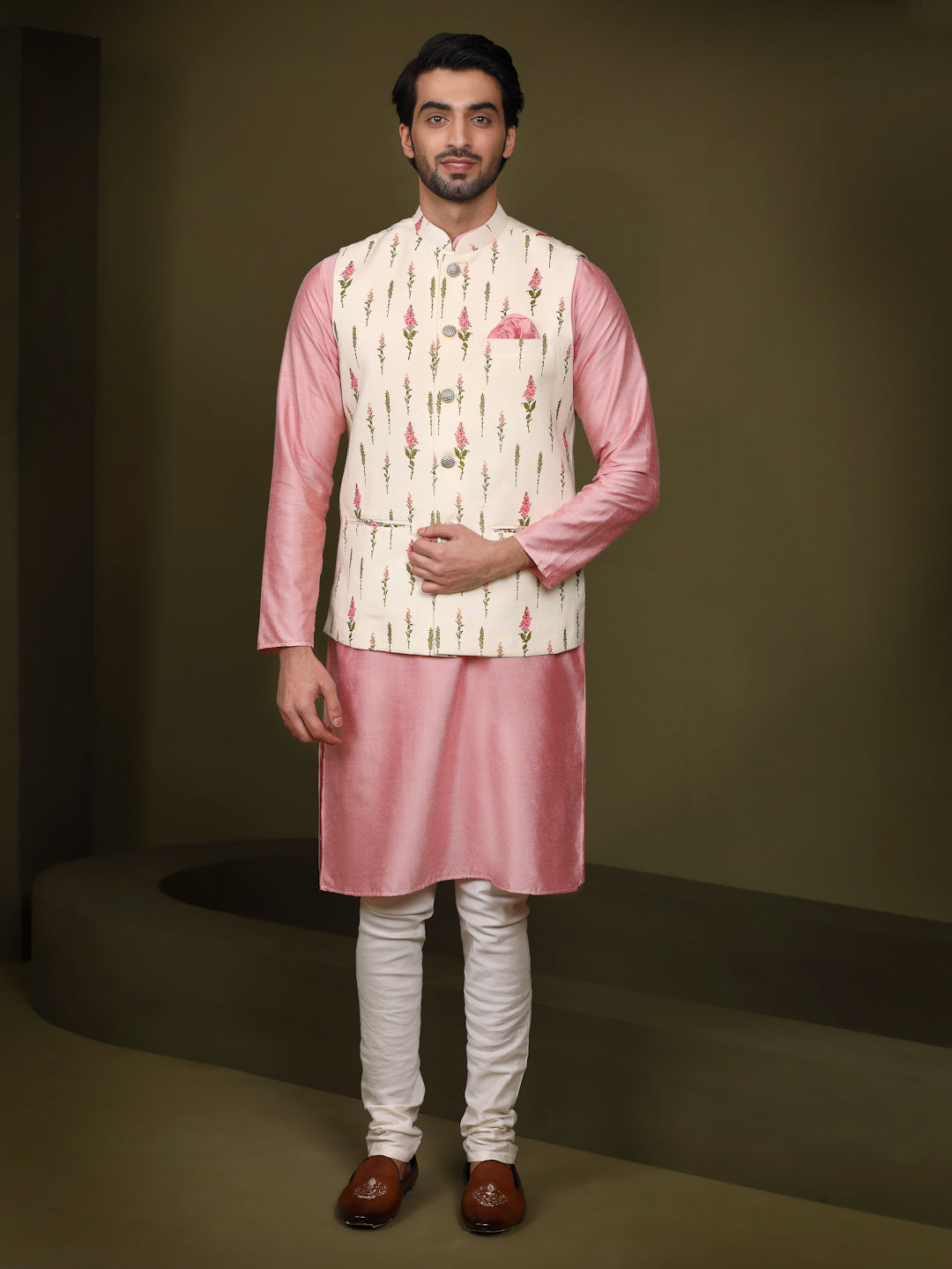 This Kurta and Jacket set can be an outfit for any occasion. The colour combination and the silhouette gives a charm of elegance and comfort adding a dash of soft look.