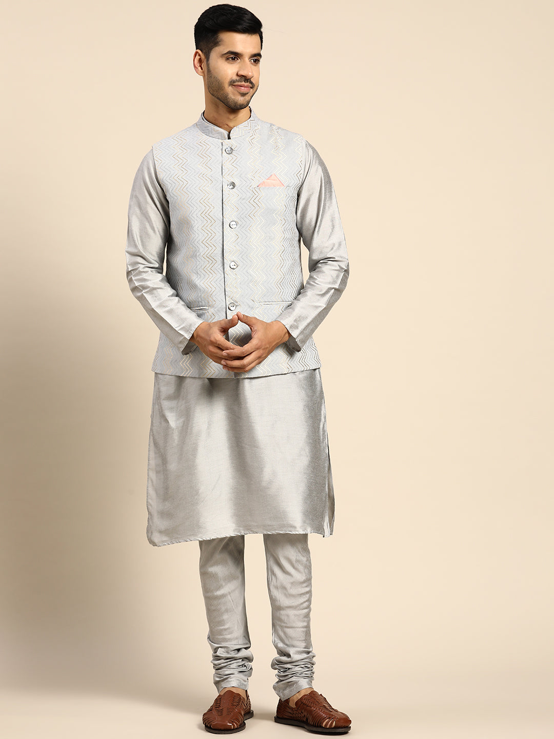 This Kurta and Jacket set can be an outfit for any occasion. The colour combination and the silhouette gives a charm of elegance and comfort adding a dash of soft look.