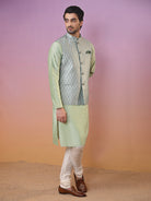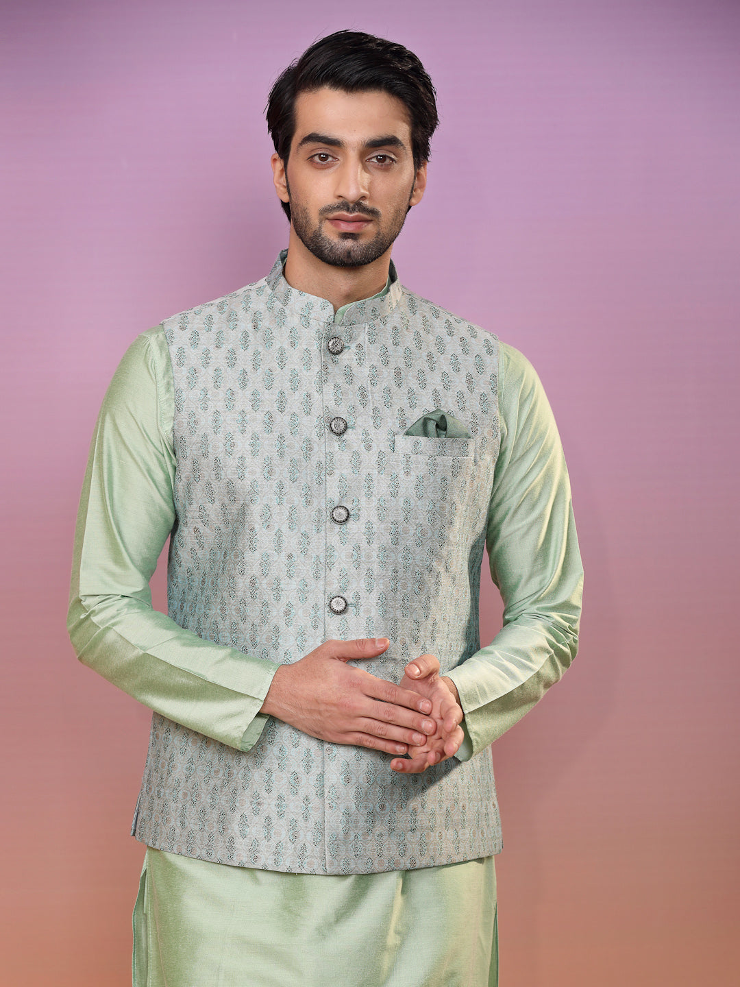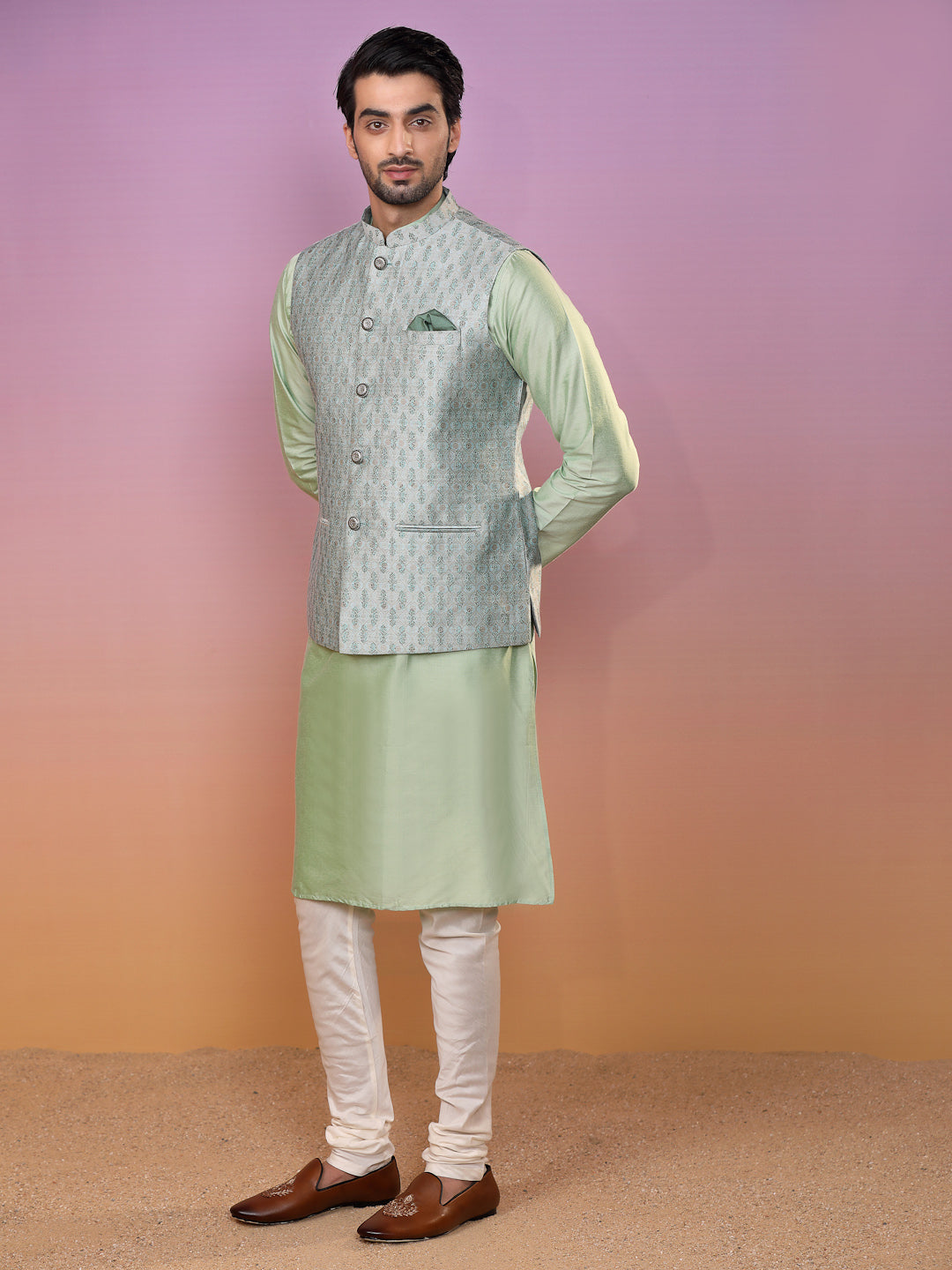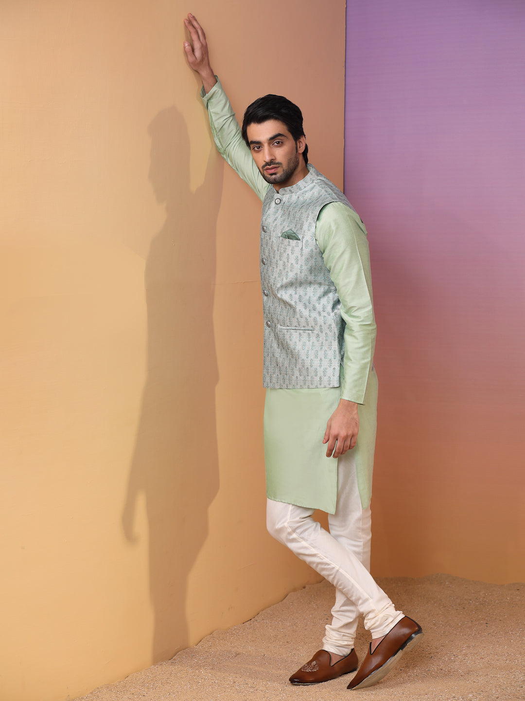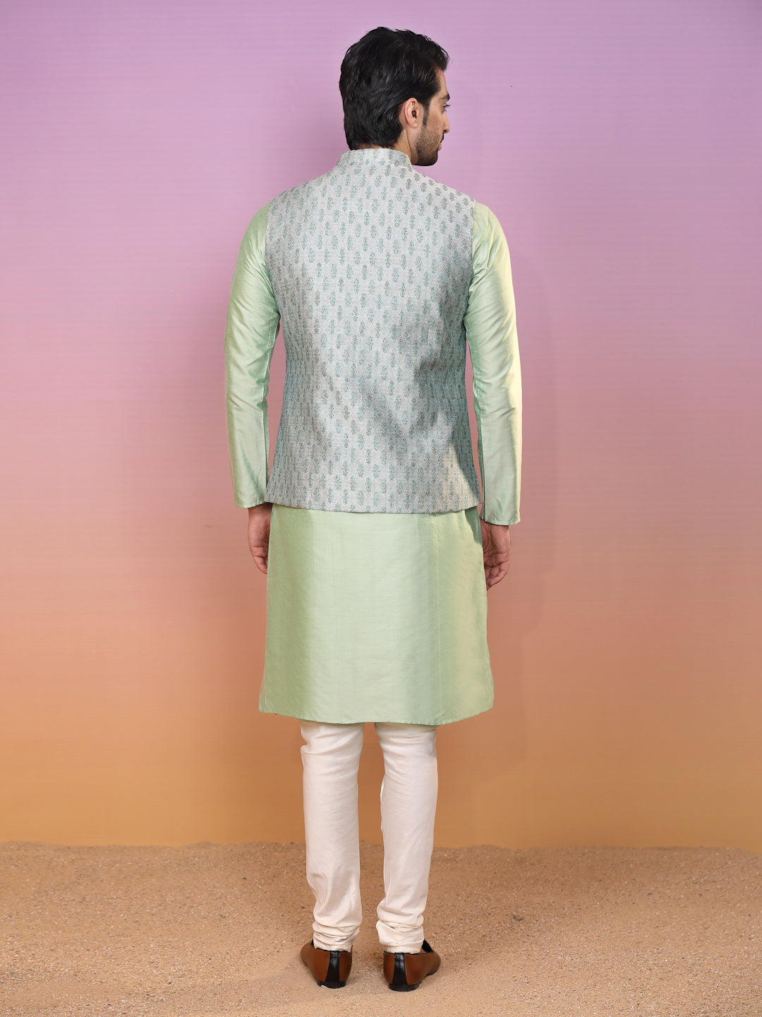 This Kurta and Jacket set can be an outfit for any occasion. The colour combination and the silhouette gives a charm of elegance and comfort adding a dash of soft look.