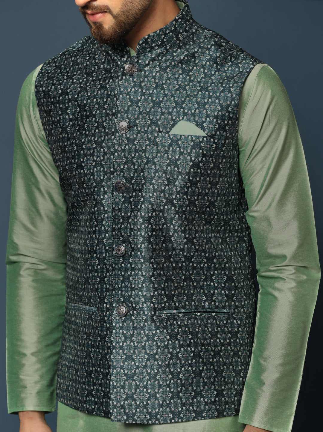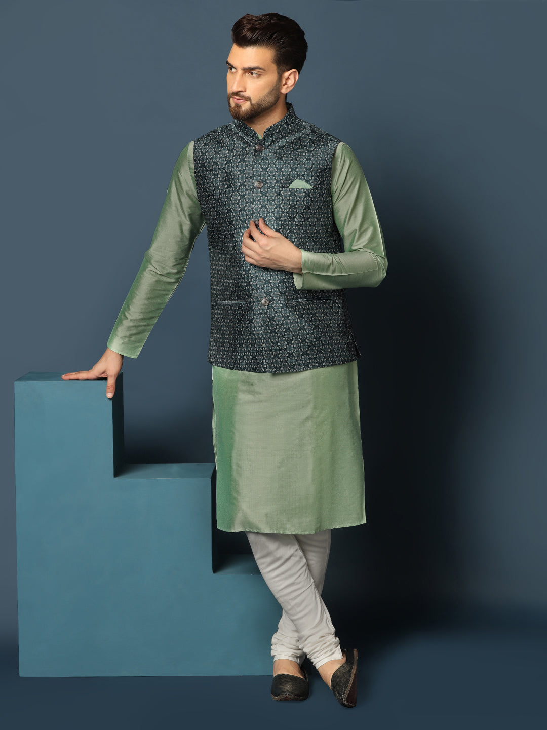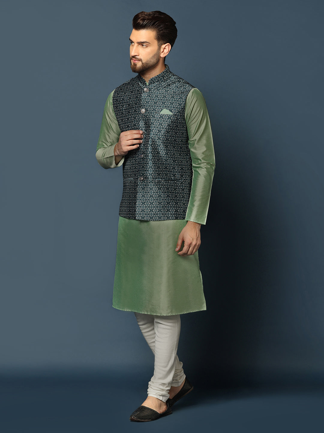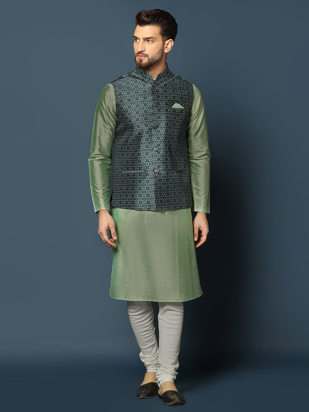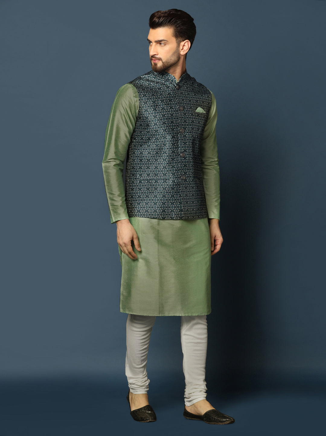 Experience classic elegance with this Set. The breathable Cotton Blend fabric with Woven Design Patternn ensures comfort throughout the day. Ideal for festive events or casual wear.