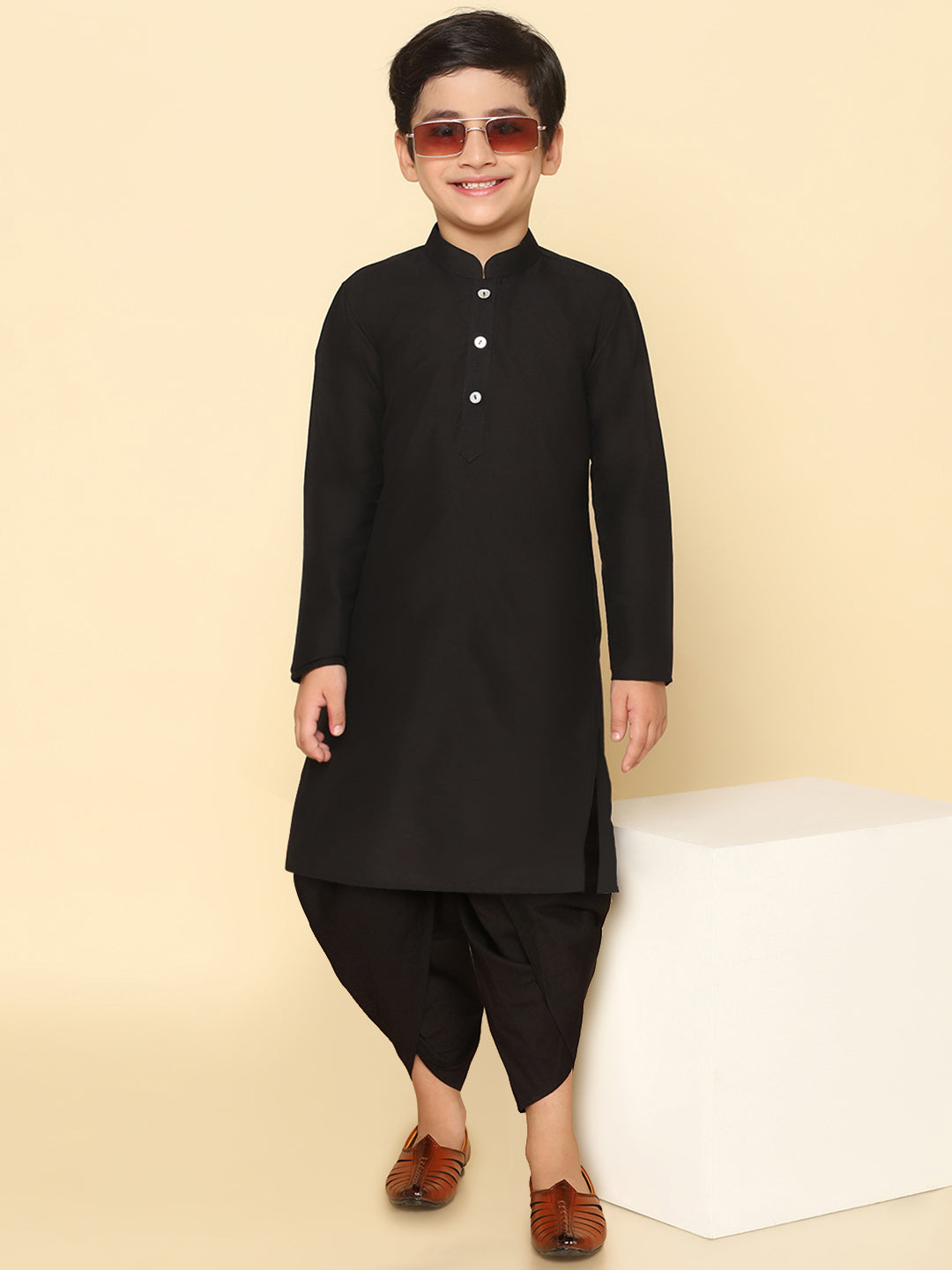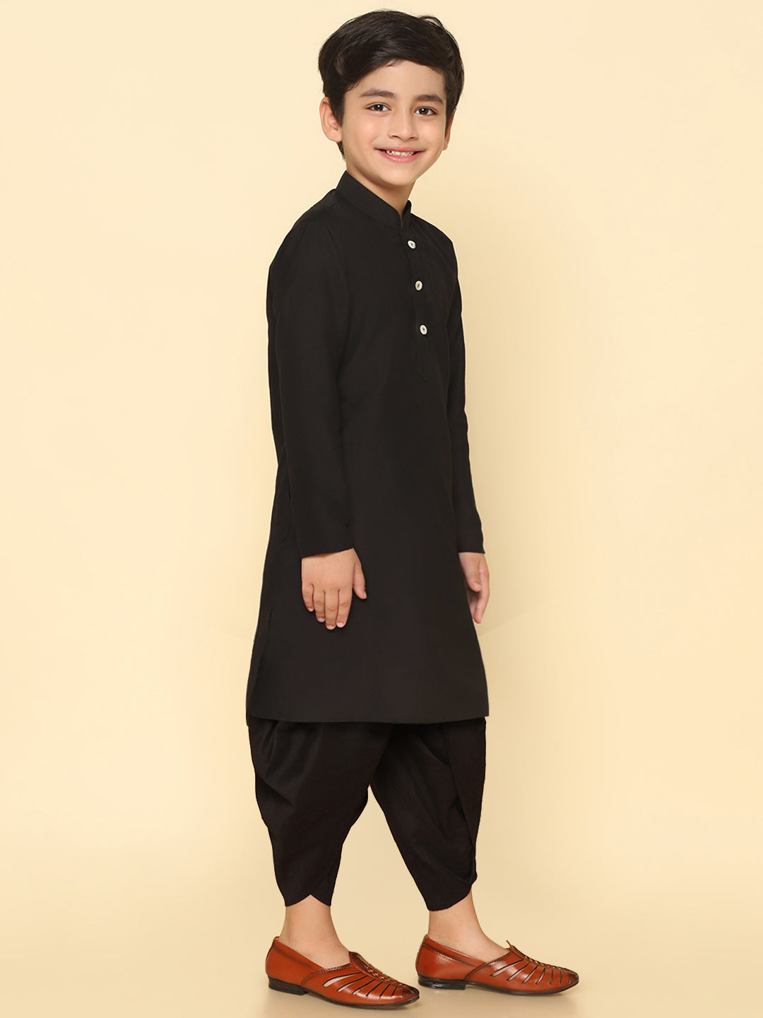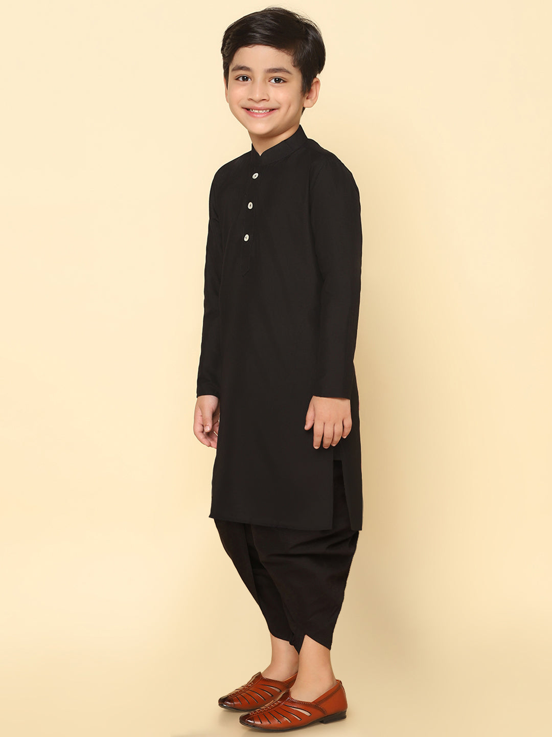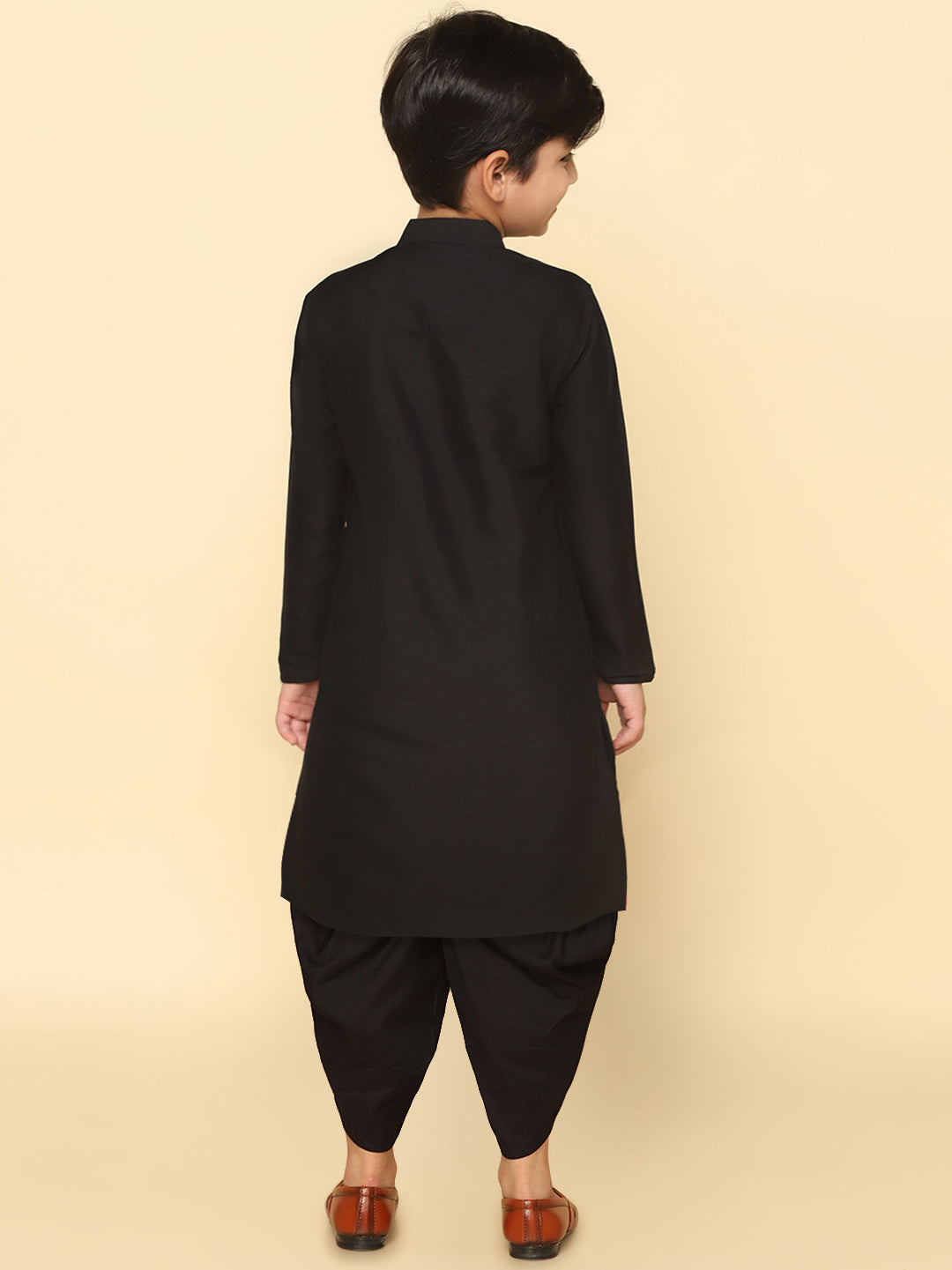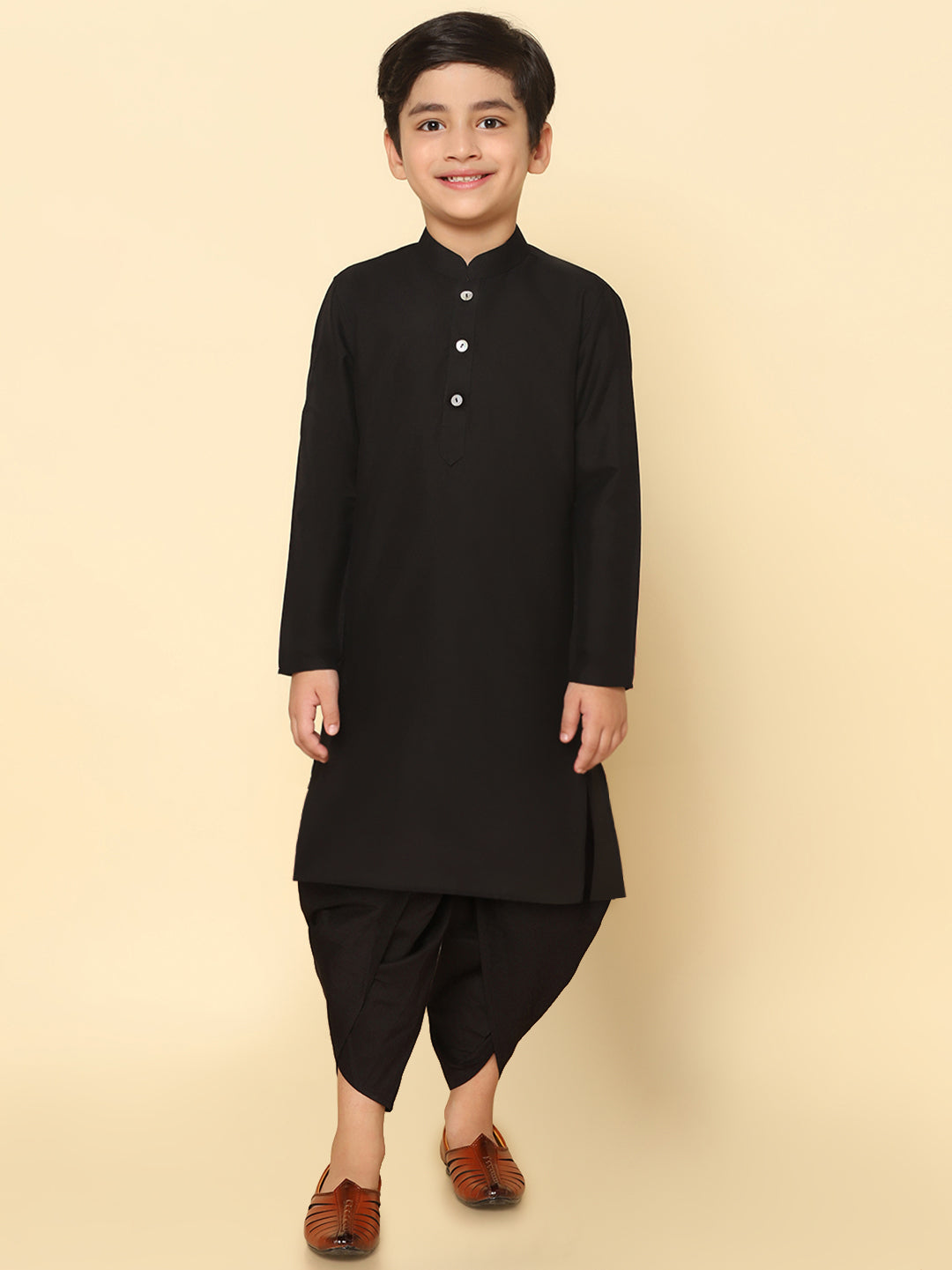This Kurta Set with Black is an elegant mandarin collar style that is perfect for occasional wear. With a full sleeve Solid design and Cotton Blend fabric, it will make you look stylish.