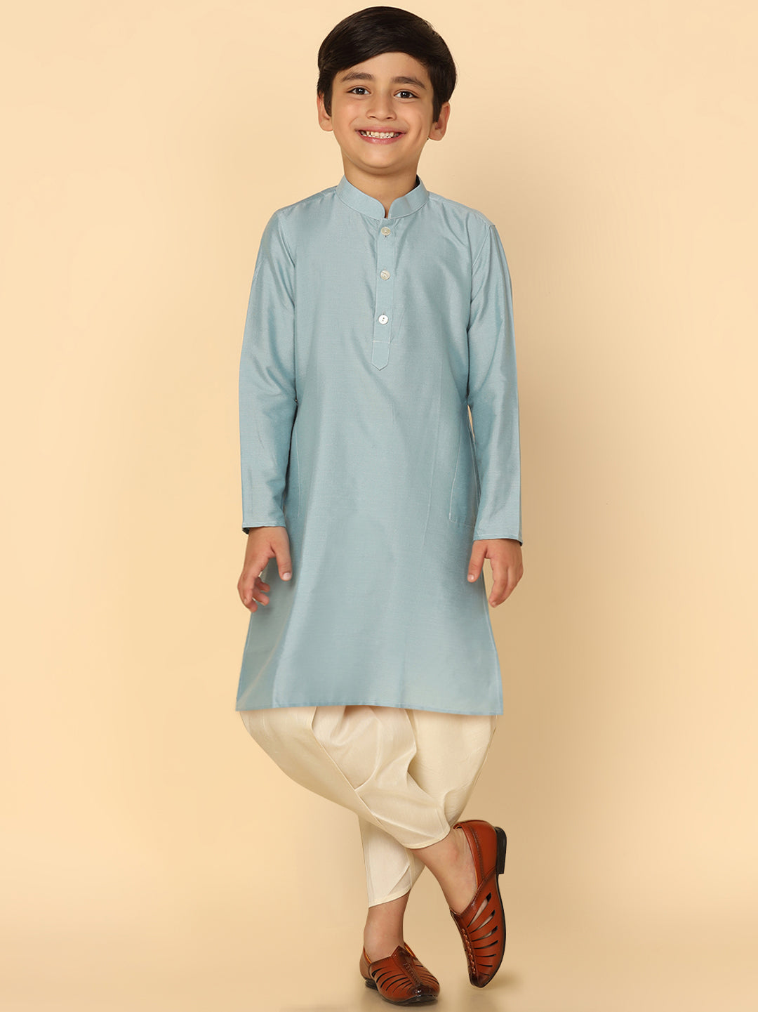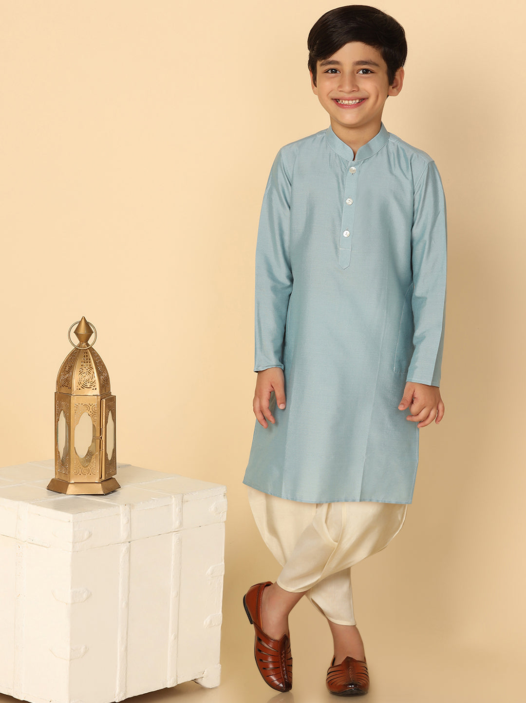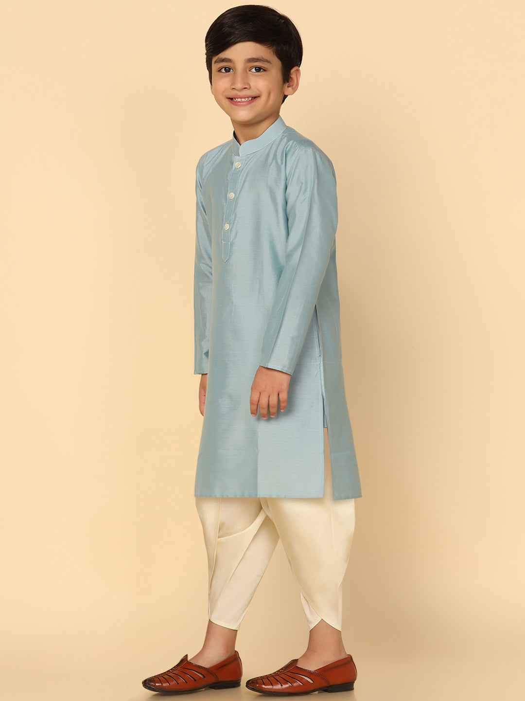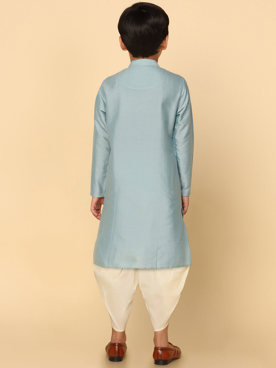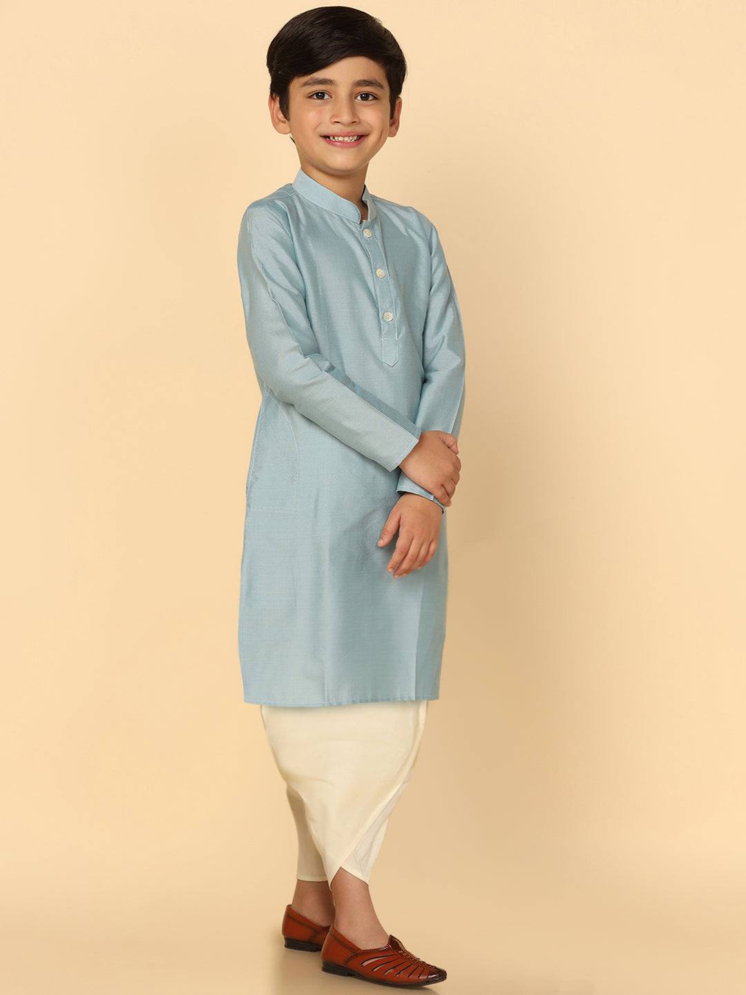This Kurta Set with Blue is an elegant mandarin collar style that is perfect for occasional wear. With a full sleeve Solid design and Pure Cotton fabric, it will make you look stylish.