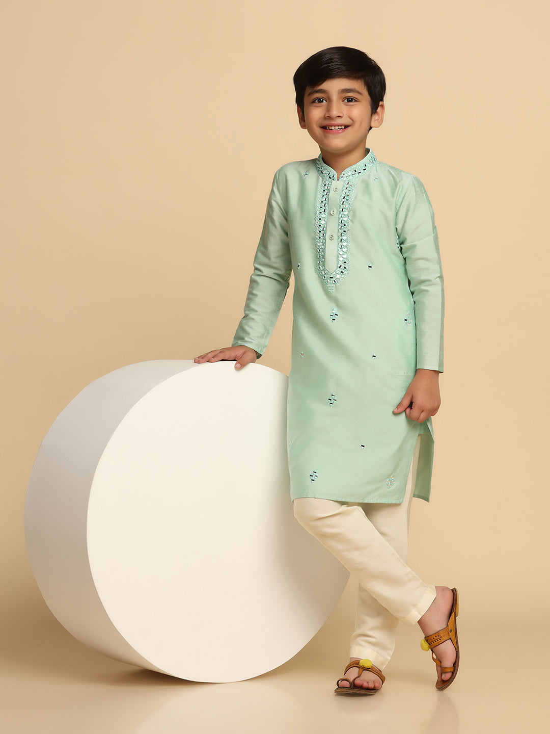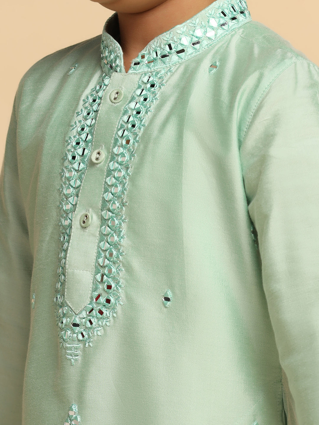 Boy's Green Self Design Kurta