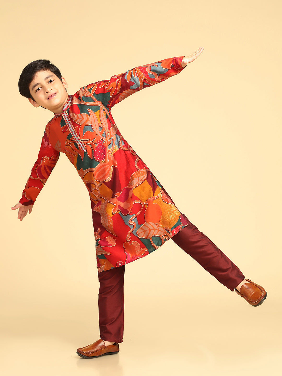 Experience classic elegance with this Kisah Boy's Multi Cotton Blend Printed Kurta. The breathable fabric ensures comfort throughout the day. Ideal for festive events or casual wear.