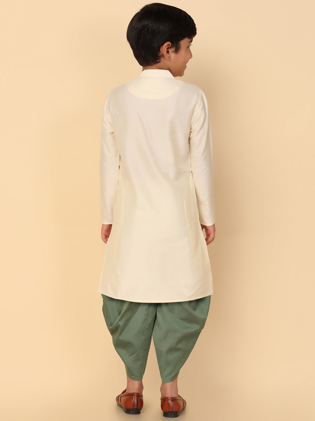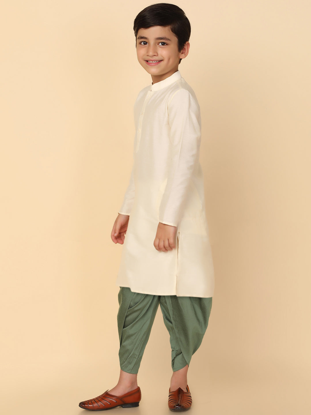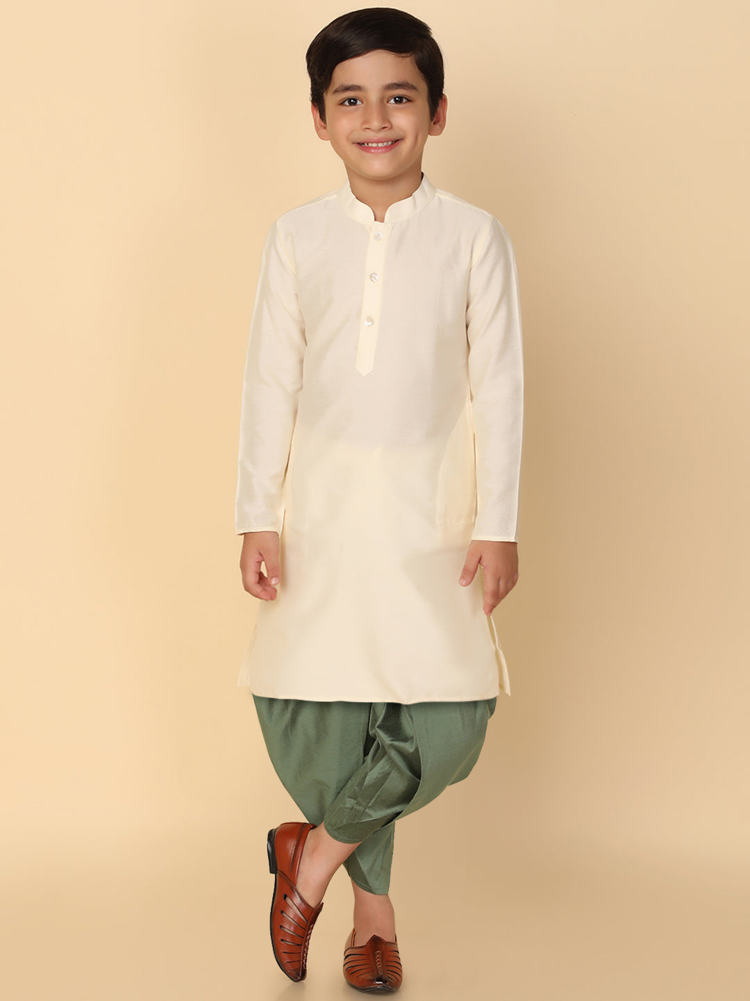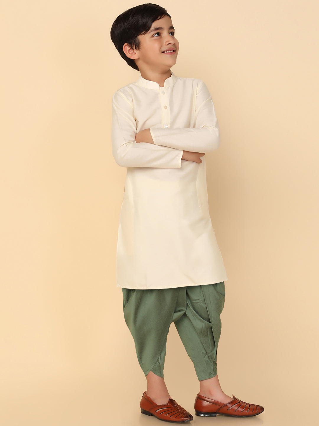 This Kurta Set with Off White is an elegant mandarin collar style that is perfect for occasional wear. With a full sleeve Solid Dyed design and Cotton Blend fabric, it will make you look stylish.