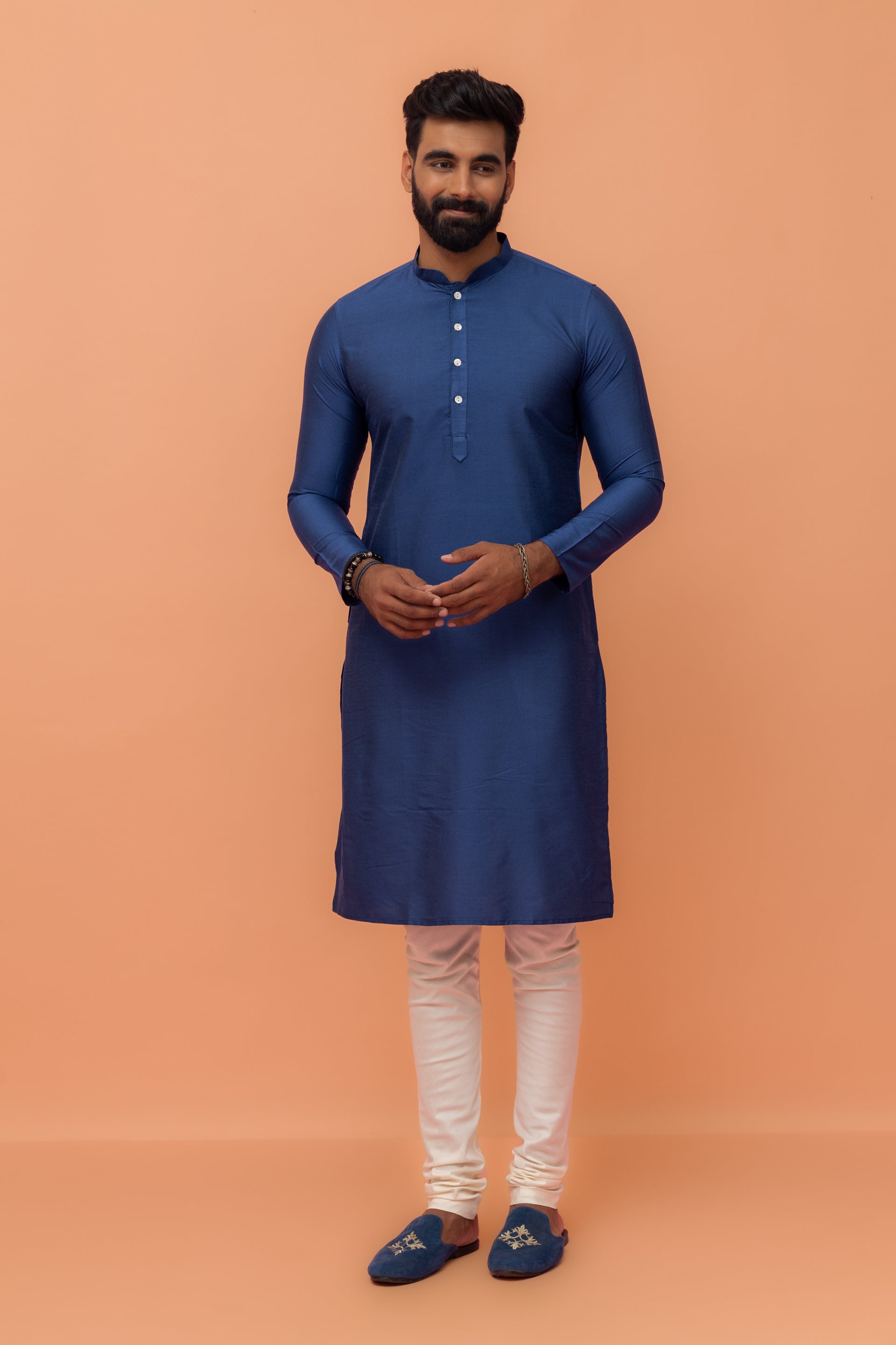 Experience classic elegance with this Kisah Men Blue Cotton Blend Sequinned Pattern, Kurta Jacket Churidar Set. The breathable fabric ensures comfort throughout the day. Ideal for festive events or casual wear.