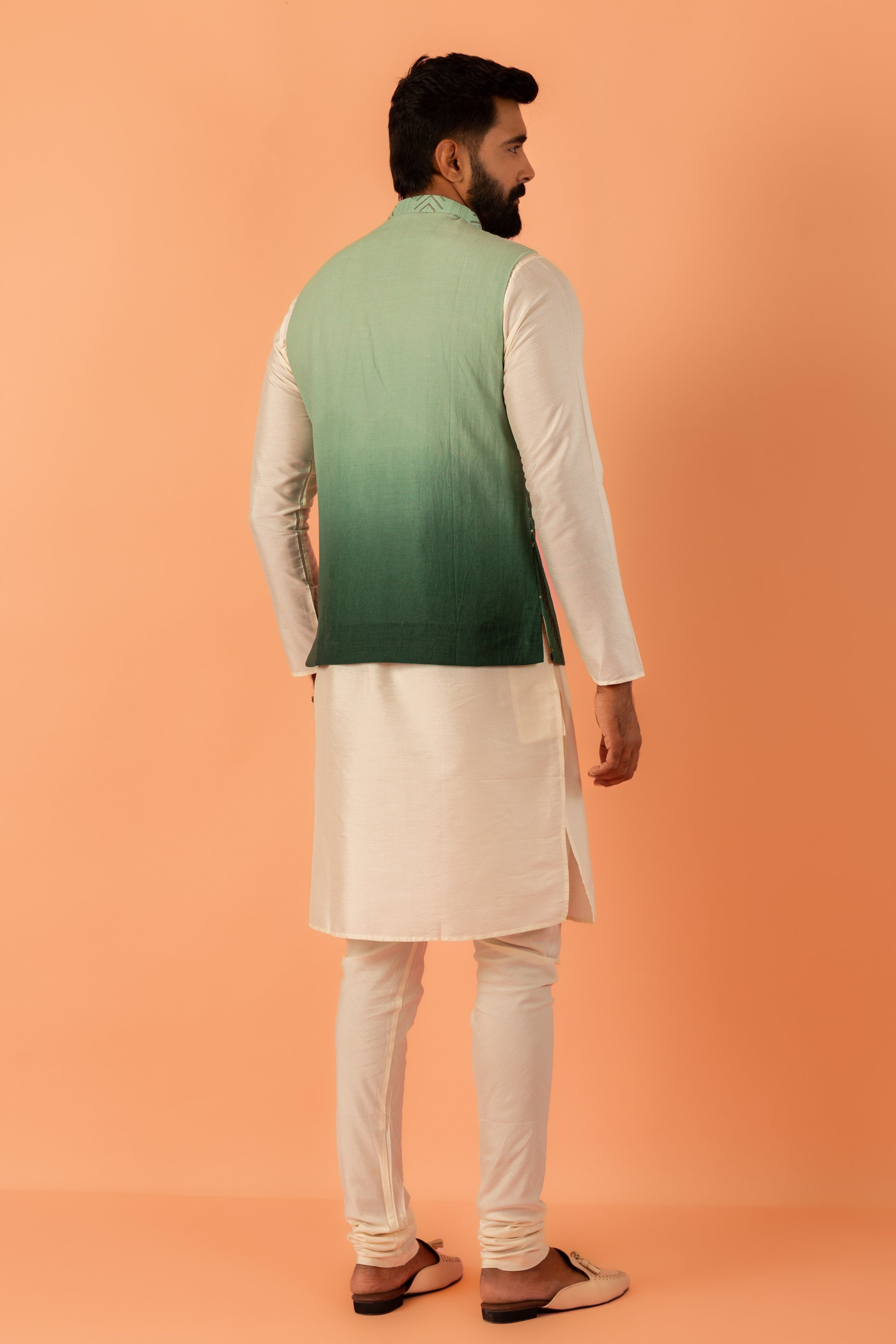 Experience classic elegance with this Kisah Men Green Cotton Blend Sequinned Pattern, Kurta Jacket Churidar Set. The breathable fabric ensures comfort throughout the day. Ideal for festive events or casual wear.