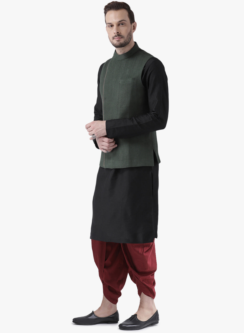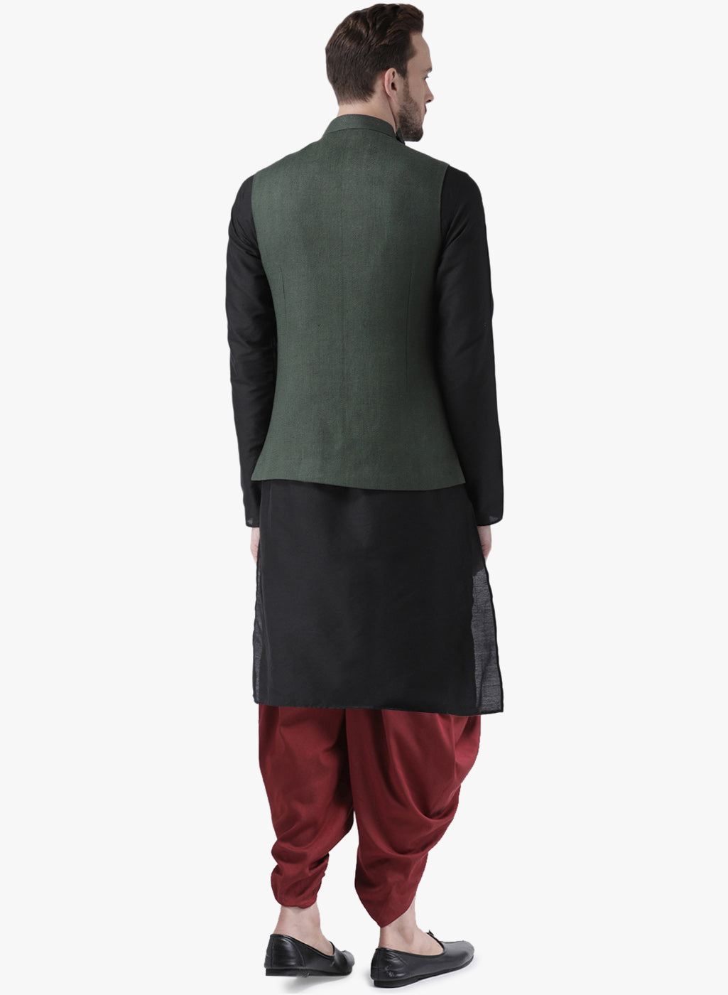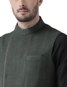 Kisah Men Green Kurta Jacket Dhoti Set