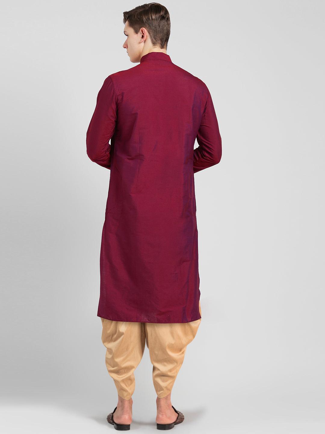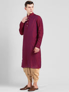 Elevate your style with this elegant Magenta color Kurta Dhoti Set. Made from a premium Cotton Blend Fabric and Solid pattern, it offers unmatched comfort and sophistication. Perfect for any festive occasion.