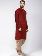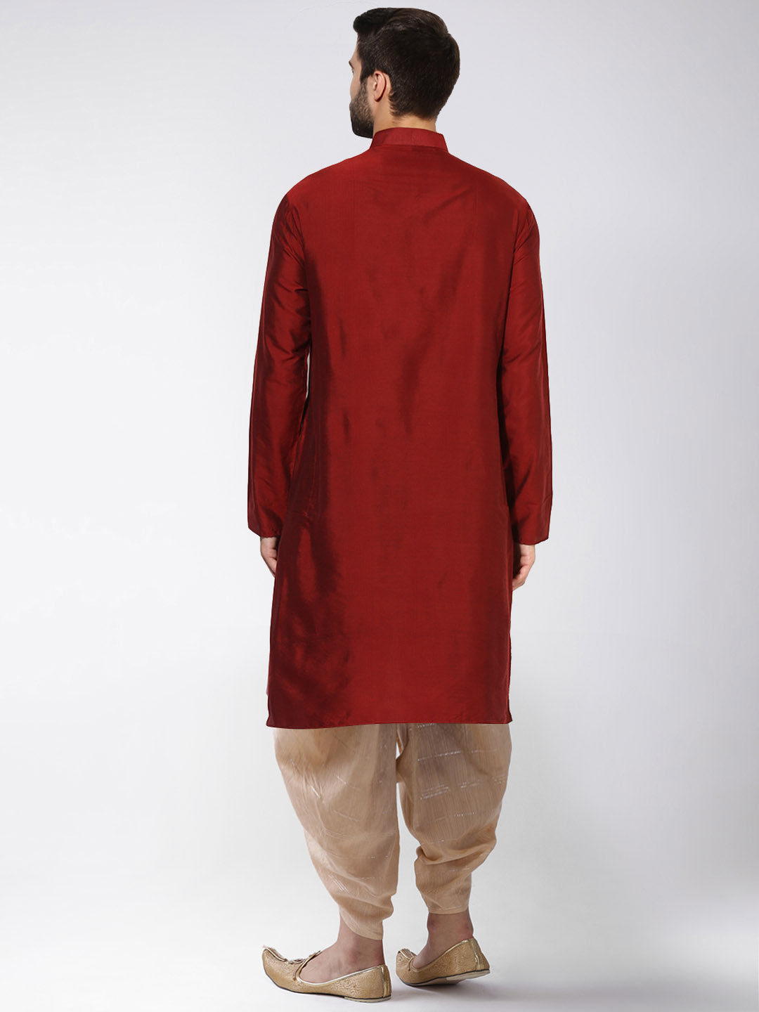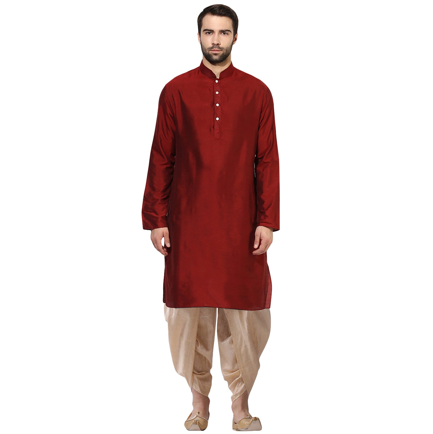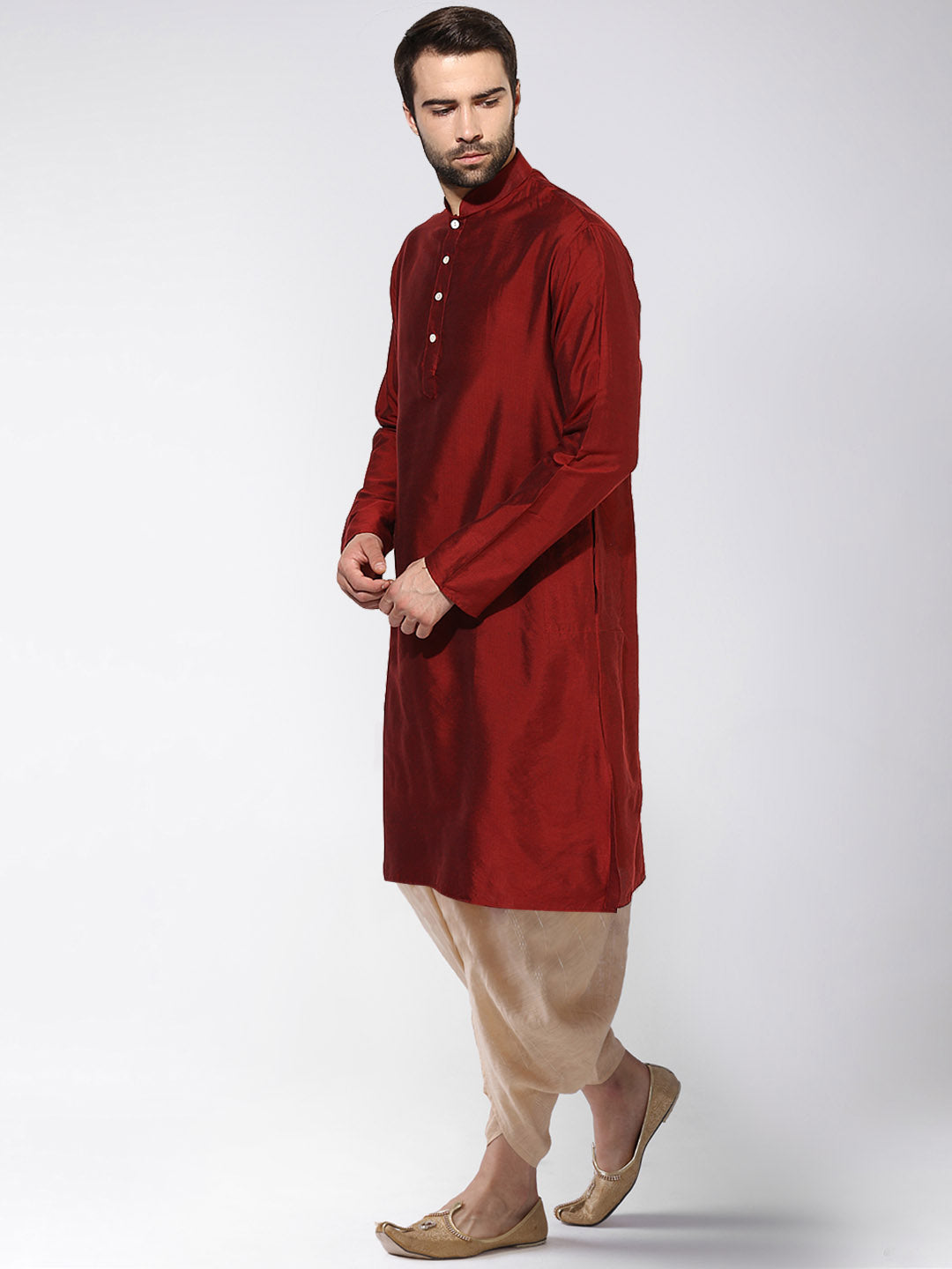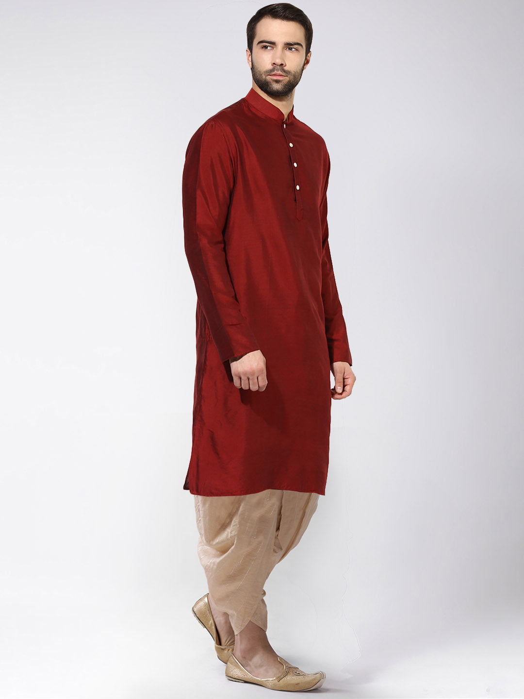 Maroon Silk Blend Solid Kurta Dhoti Set
