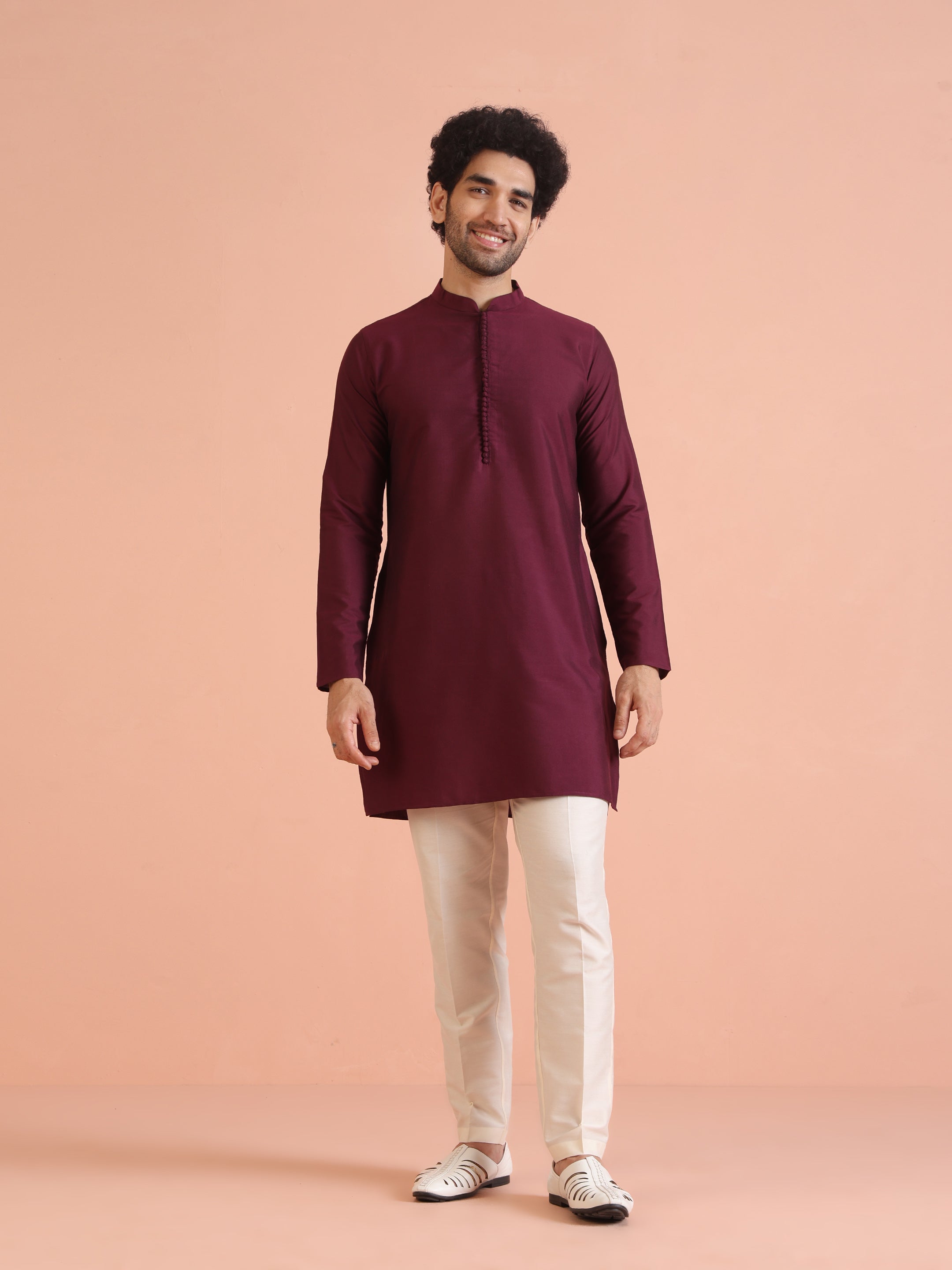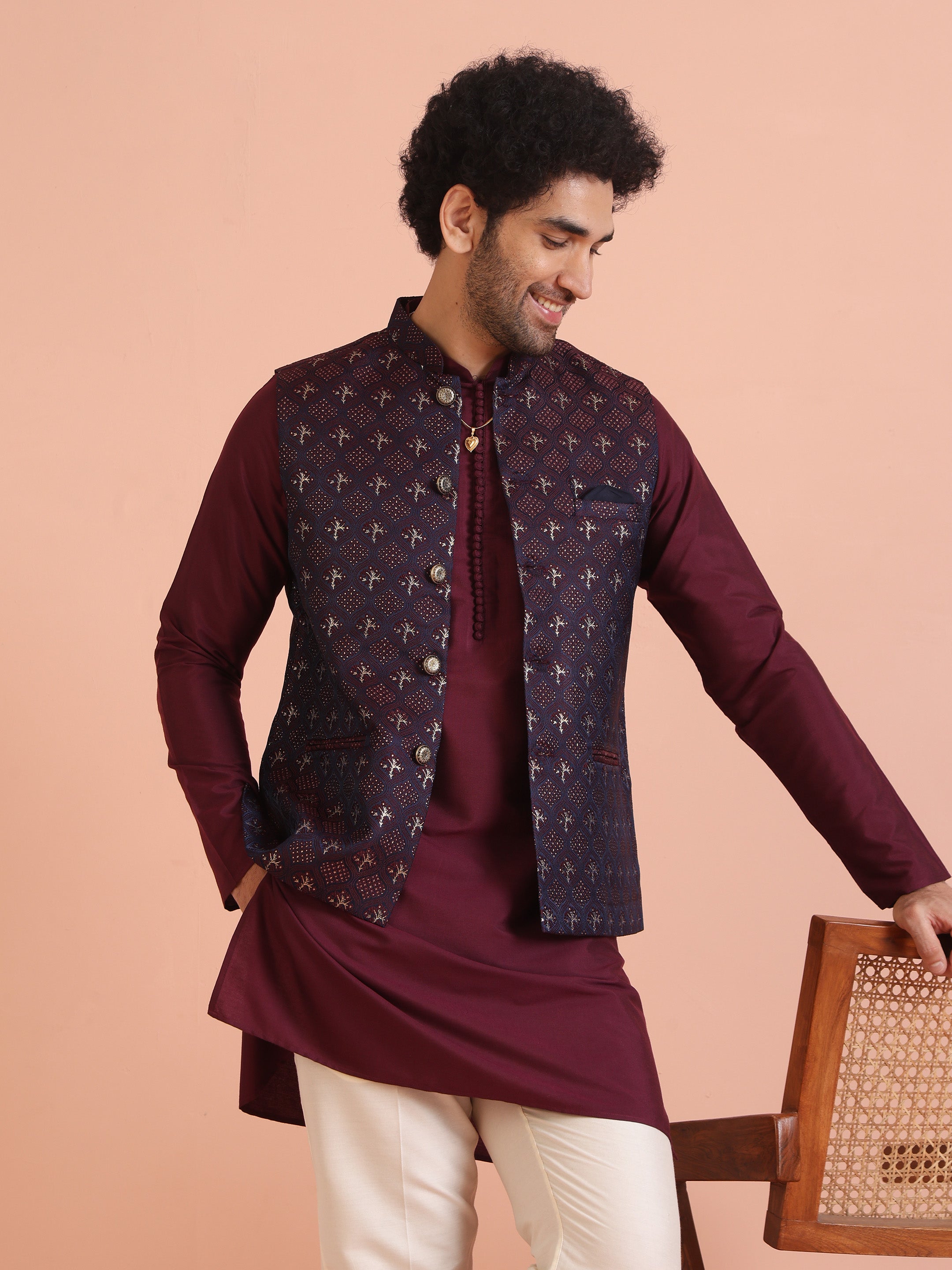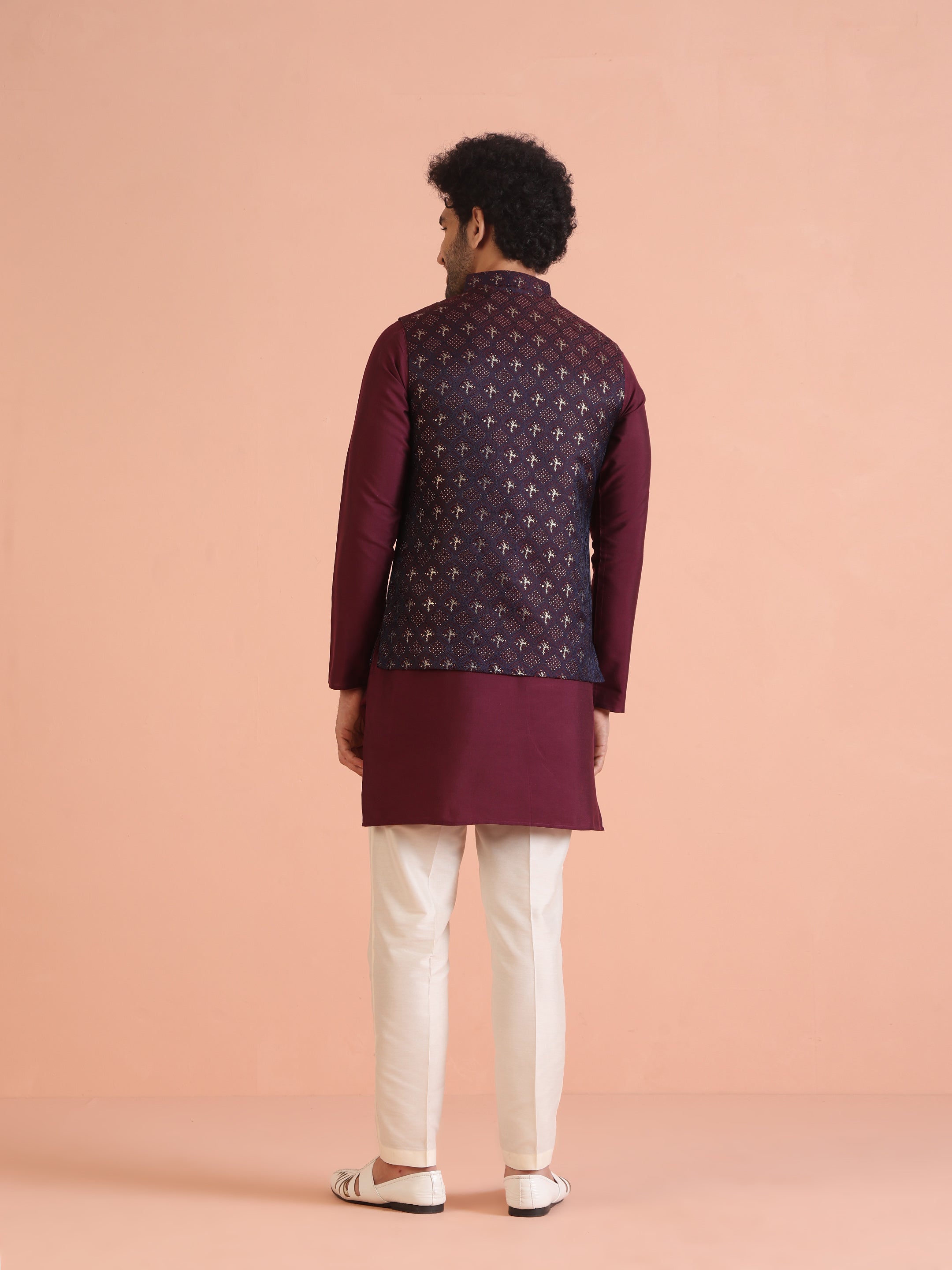 Experience classic elegance with this Kisah Men Grey Jacquard Kurta Jacket Trouser Set. The breathable Silk Blend fabric with Jacquard Patternn ensures comfort throughout the day. Ideal for festive events or casual wear.