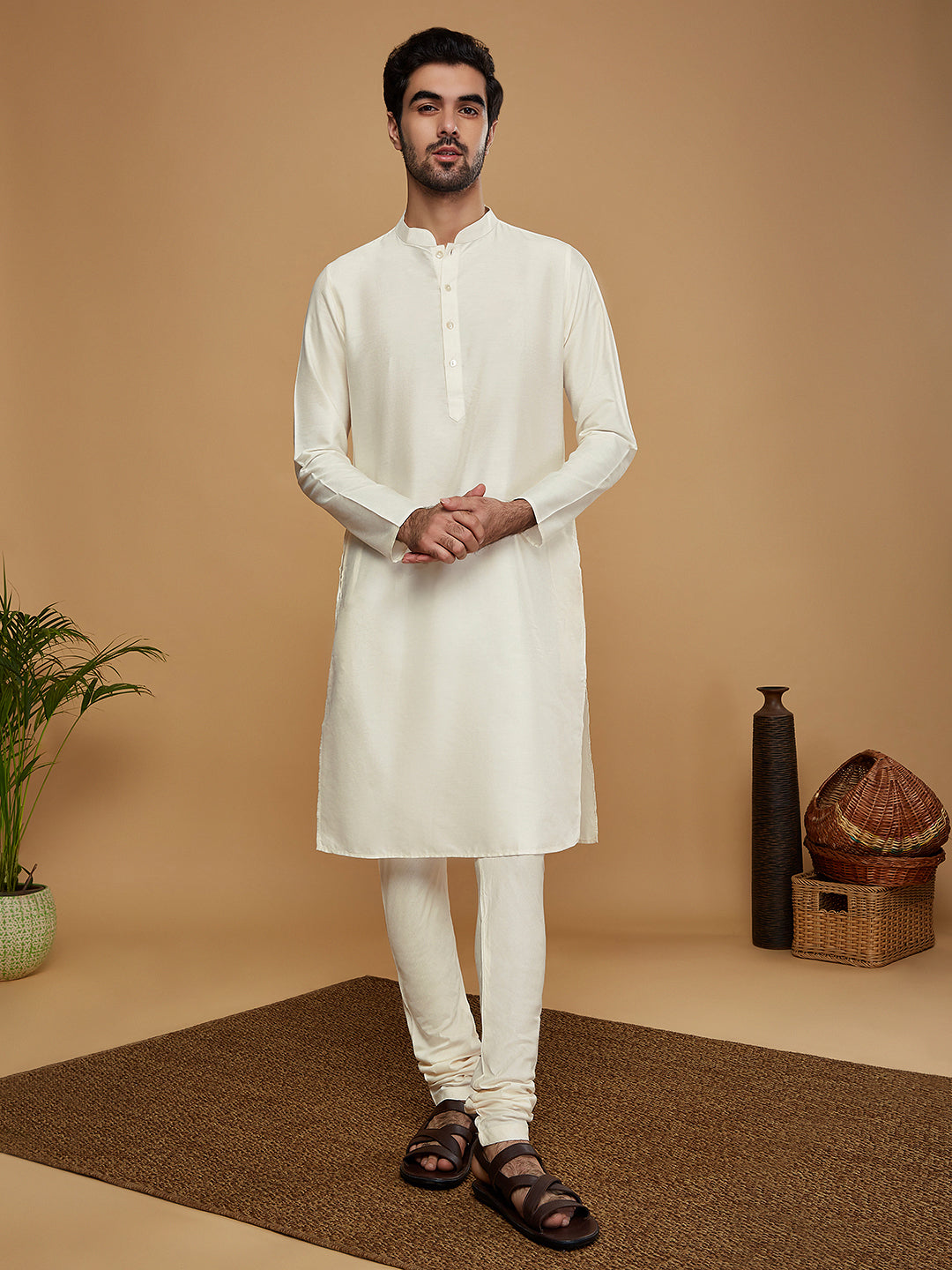 Experience the style and comfort of this Kisah kurta Set. With Off White color, Cotton Blend fabric, and Solid pattern, you'll look your best. this kurta is perfect for any occasion..