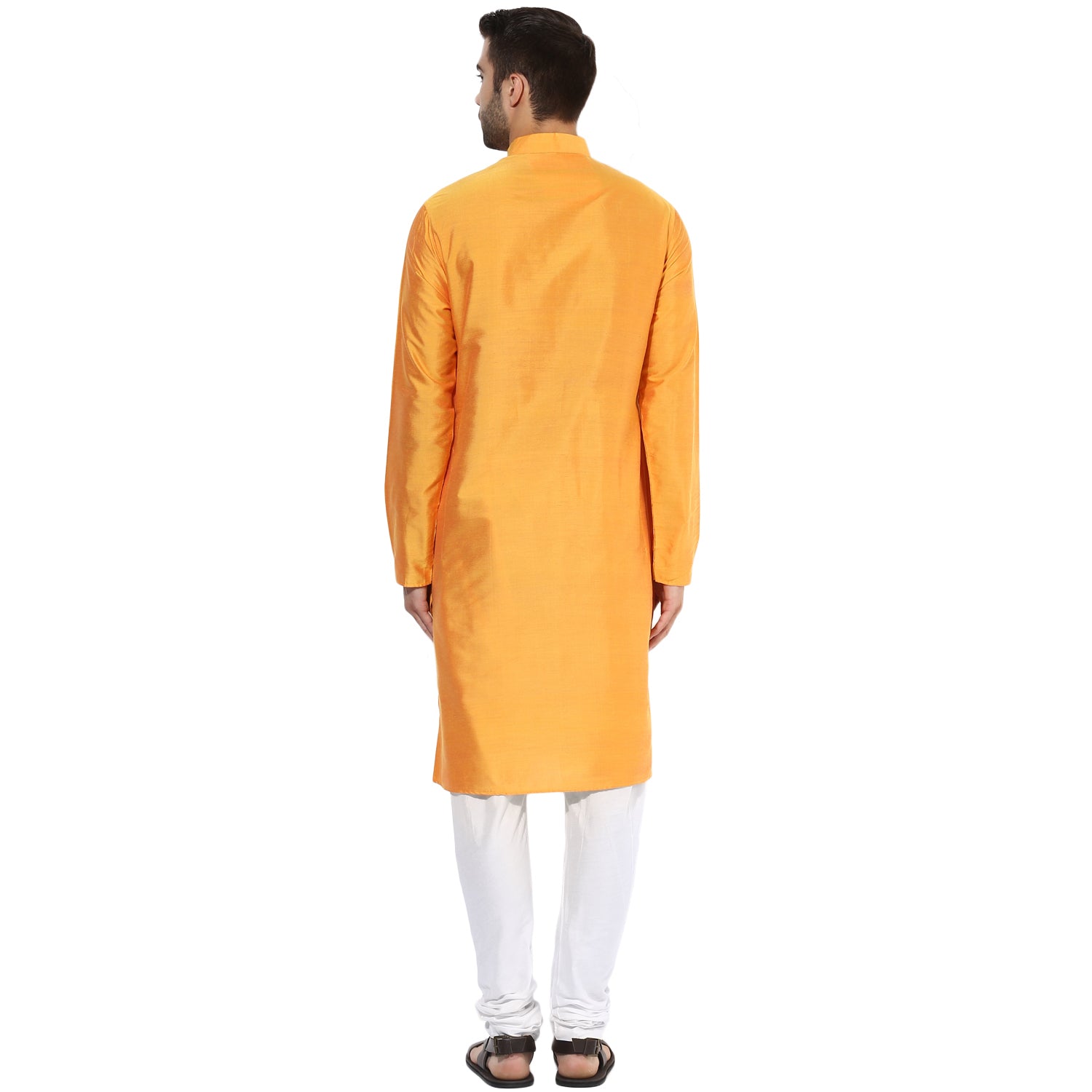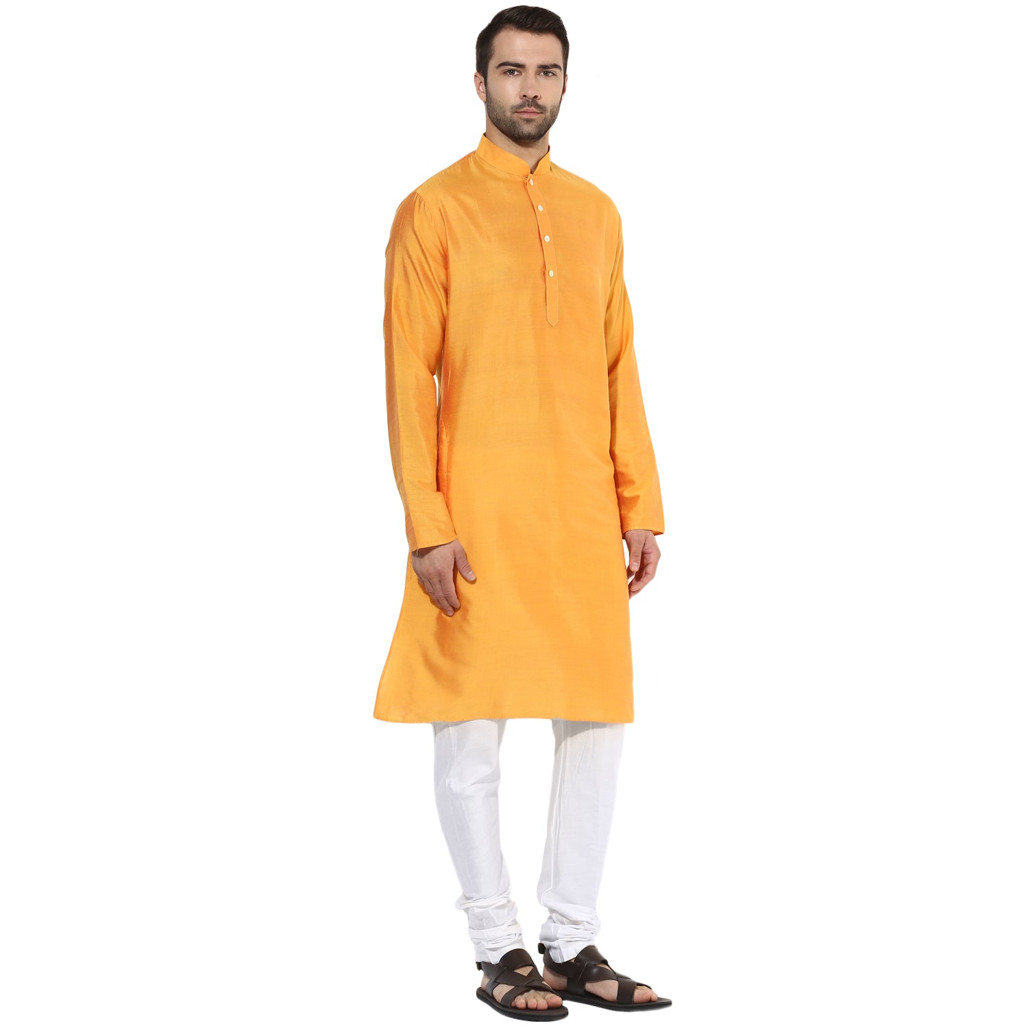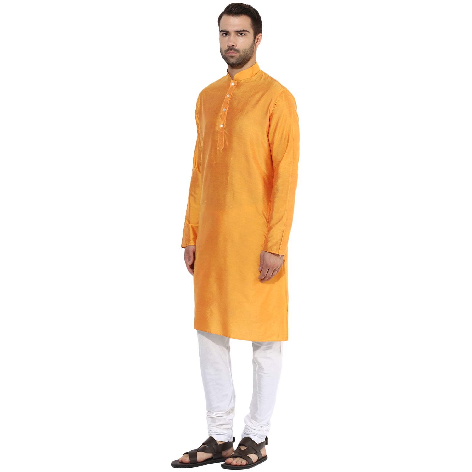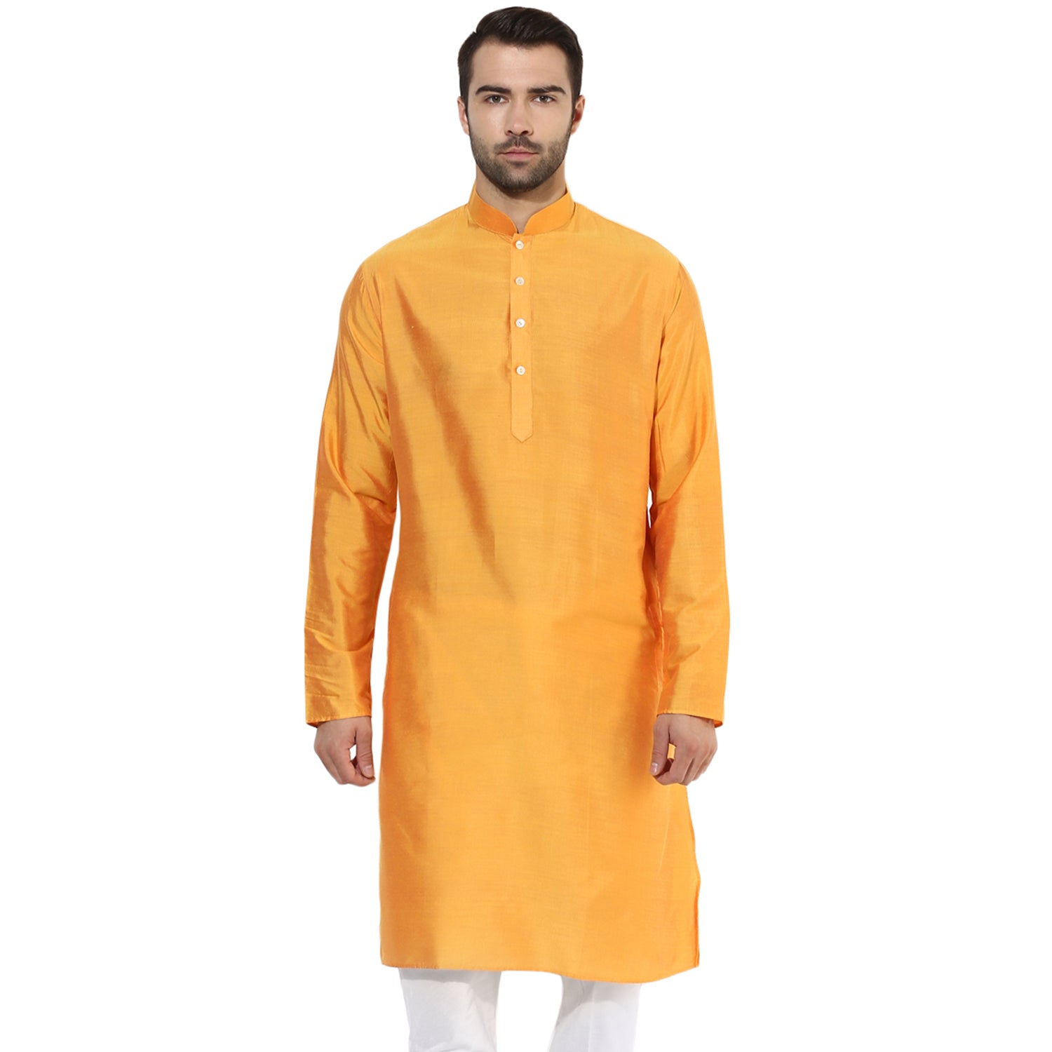 Yellow Silk Blend Solid Long Kurta