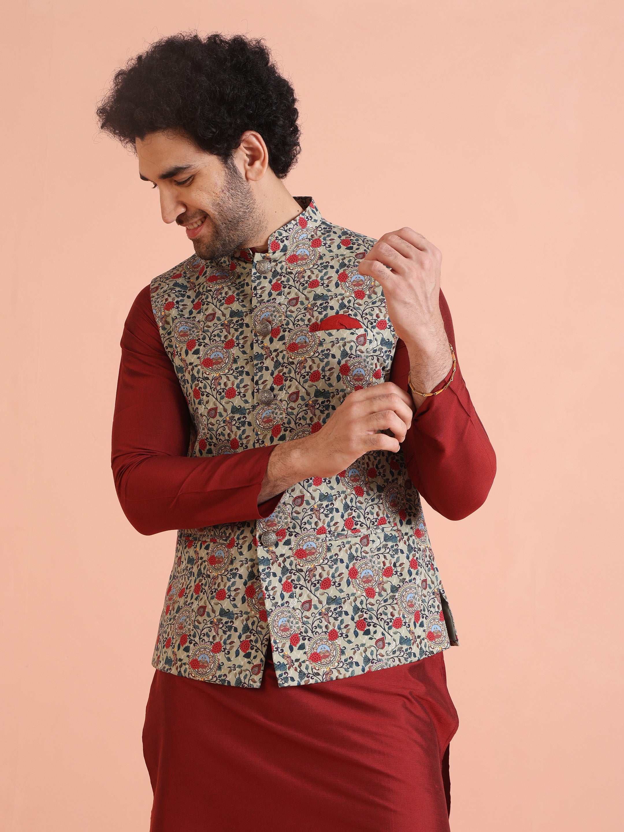 This Nehru Jacket is just perfect for festivals, or any kind off occasions. Its mandarin collar, style gives a charming look, this classic design is made from Cotton Blend fabric and Stylish Printed Pattern comes in Olive colours. Perfect for any occasion.