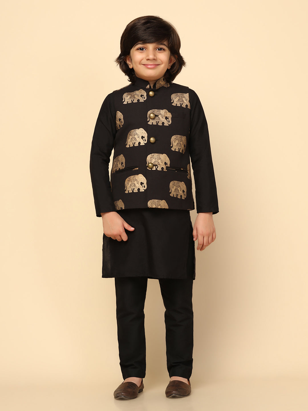 Celebrate the special moments with Black ethnic Kurta Jacket Set from the house of Kisah! The jacket is made from Blended Fabric.This set includes kurta with Bottomwear to complete your look.