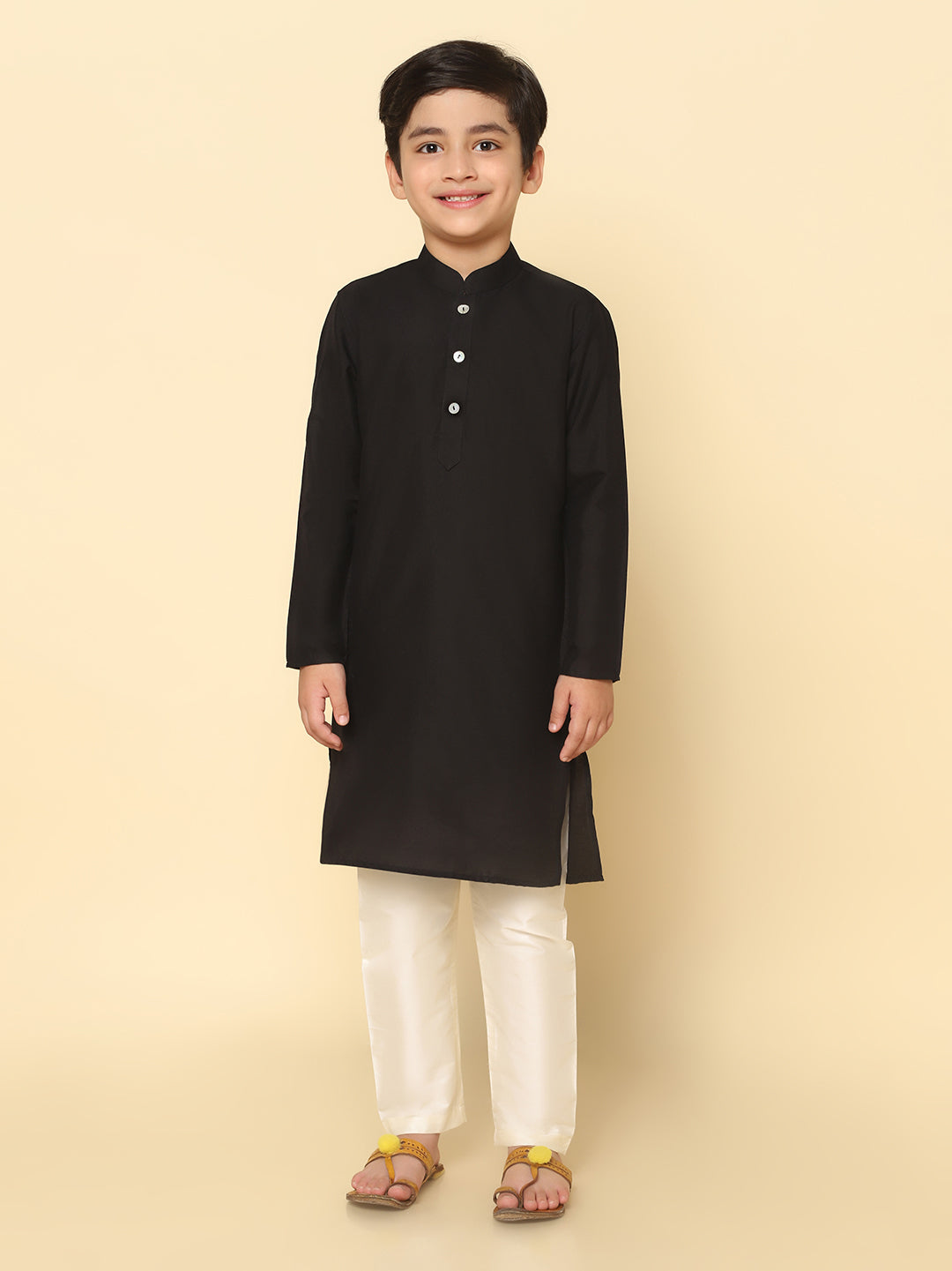 This Kurta Set is just perfect for festivals, or any kind off occasions. Its mandarin collar, style gives a charming look, this classic design is made from Cotton Blend fabric with Solid Dyed patterns and comes in Black colours. Perfect for any occasion.