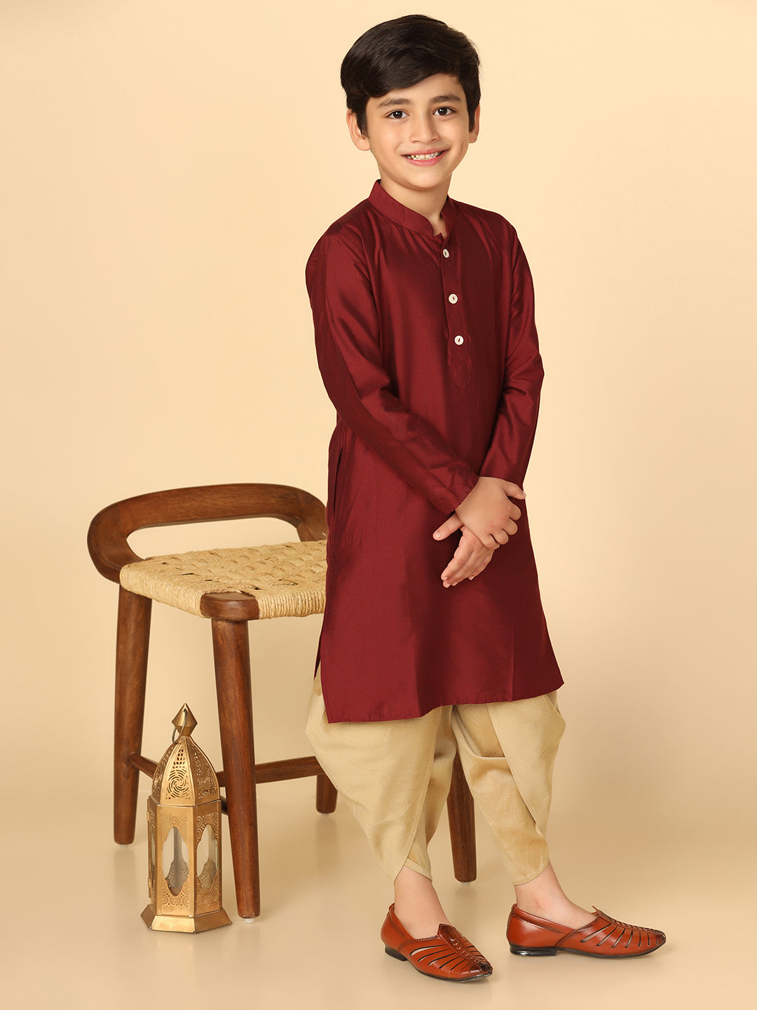 This Kurta is just perfect for festivals, or any kind off occasions. Its mandarin collar, style gives a charming look, this classic design is made from Cotton Blend fabric with Solid Dyed patterns and comes in Maroon colours. Perfect for any occasion.