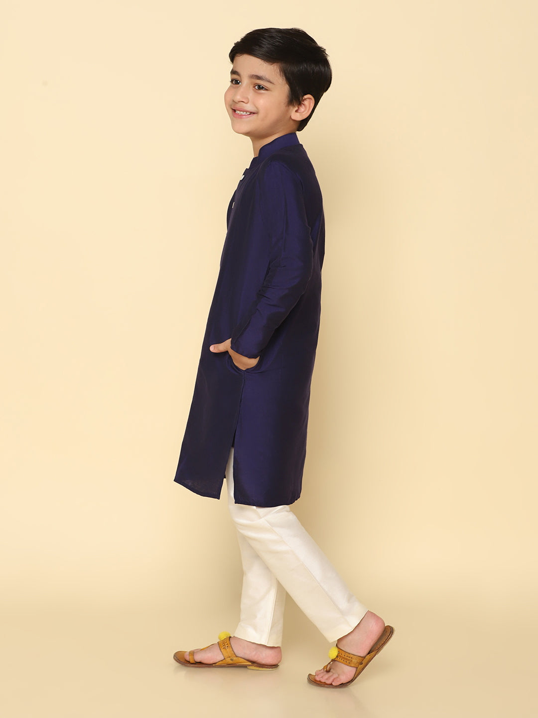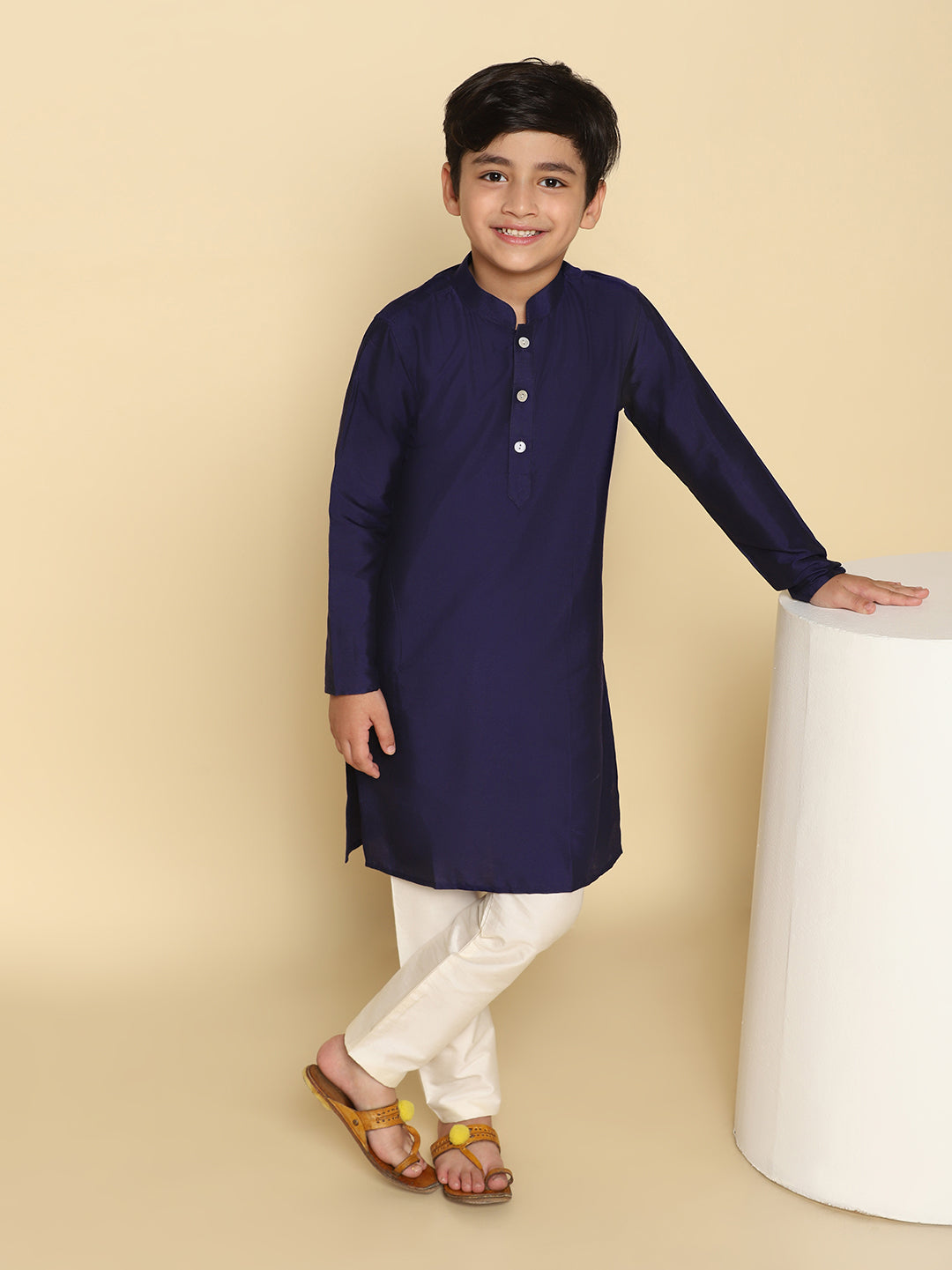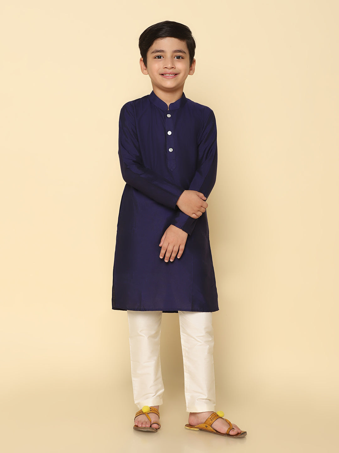 This Kurta Set is just perfect for festivals, or any kind off occasions. Its mandarin collar, style gives a charming look, this classic design is made from Cotton Blend fabric with Solid Dyed patterns and comes in Navy Blue colours. Perfect for any occasion.
