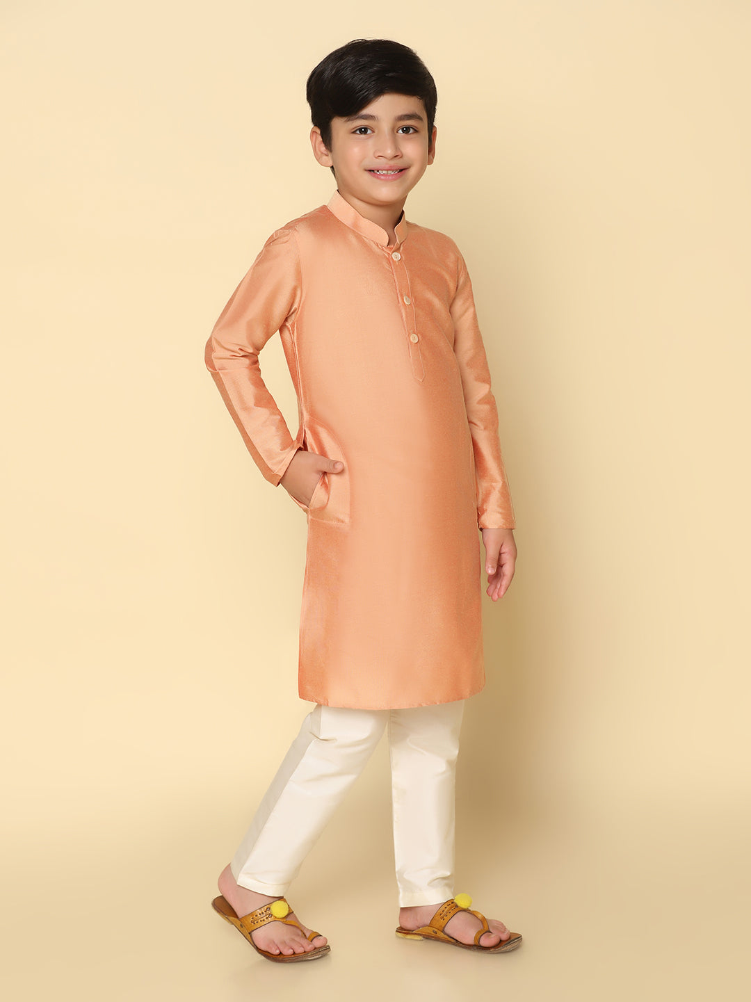 This Kurta Set is just perfect for festivals, or any kind off occasions. Its mandarin collar, style gives a charming look, this classic design is made from Cotton Blend fabric with Solid Dyed patterns and comes in Coral colours. Perfect for any occasion.