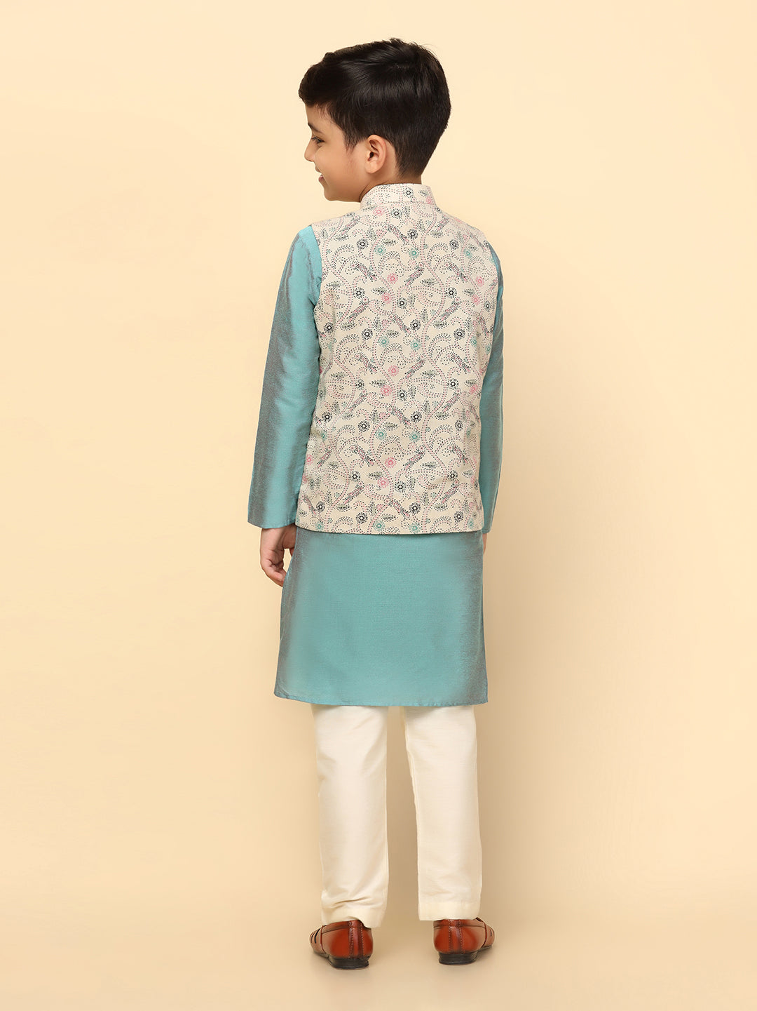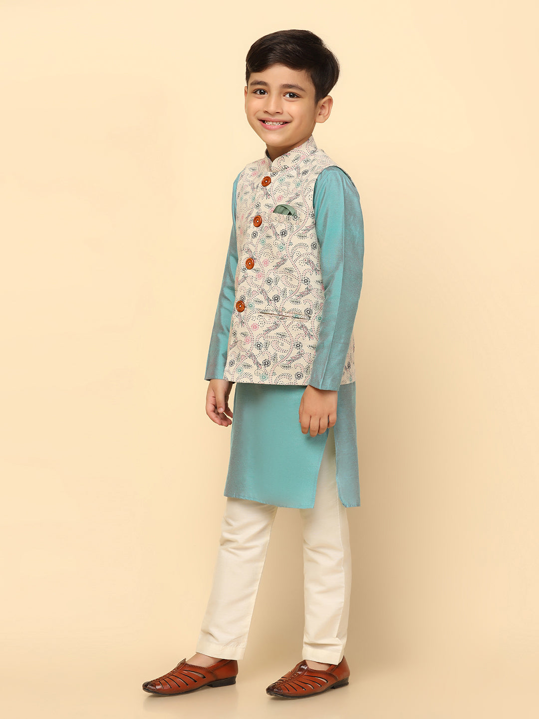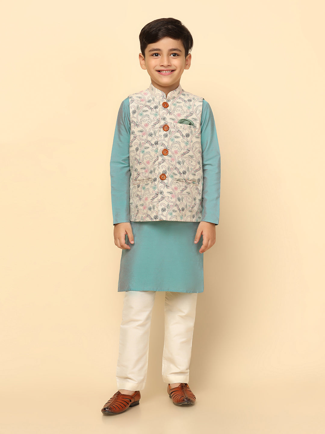 Boys Multi-Color Kurta Jacket Pyjama Sets