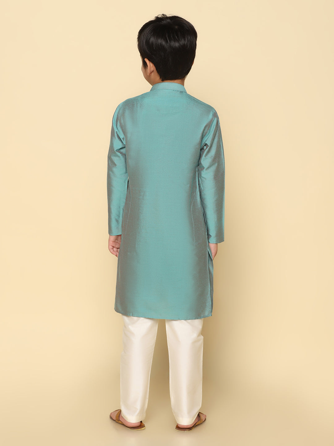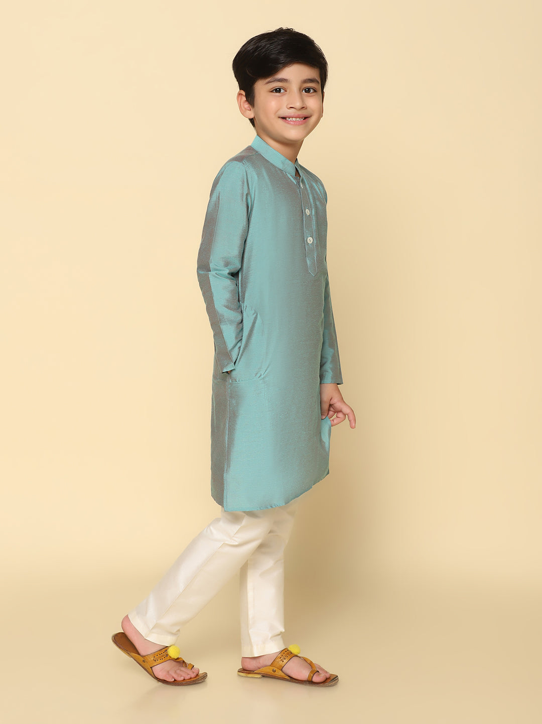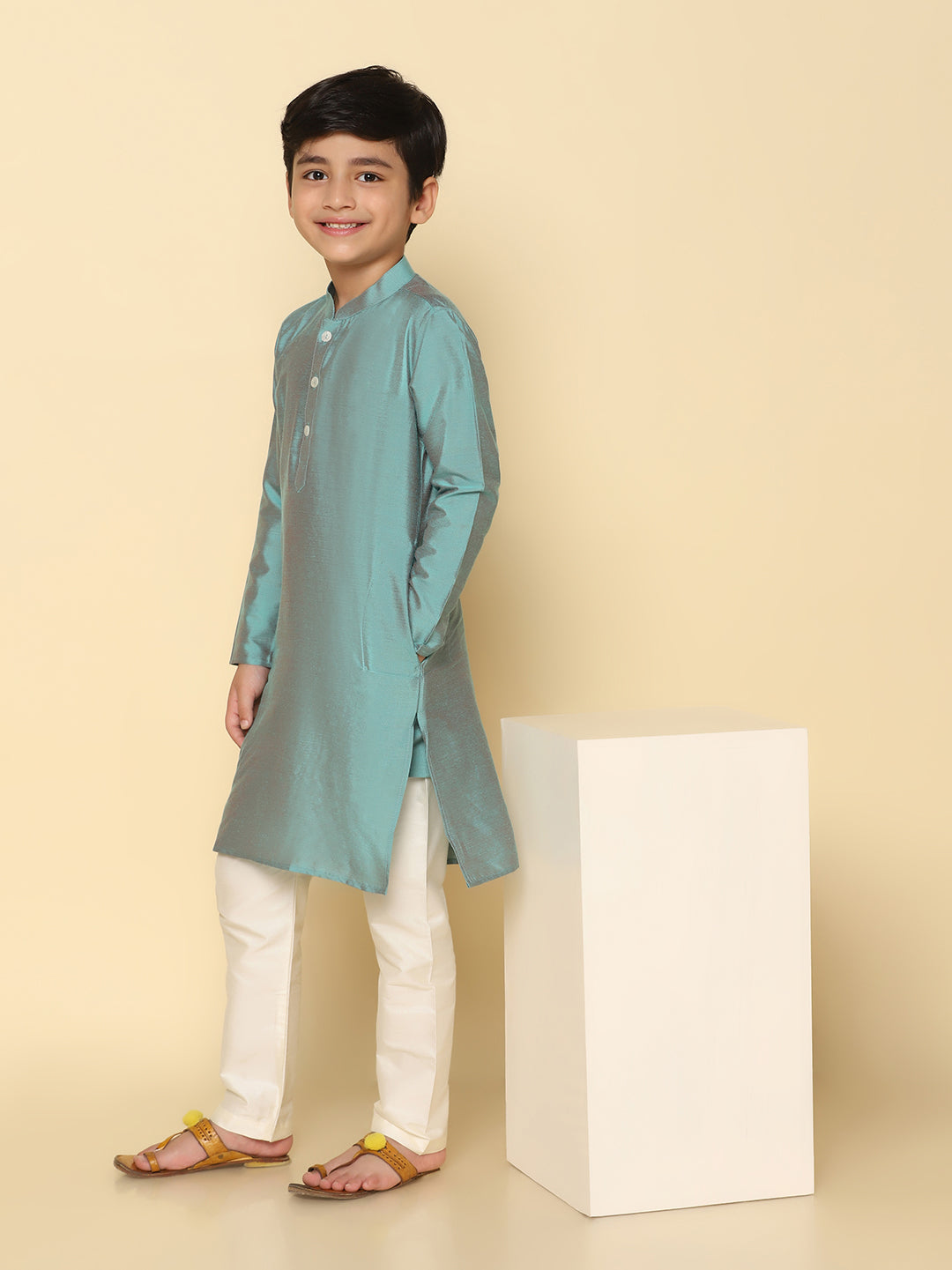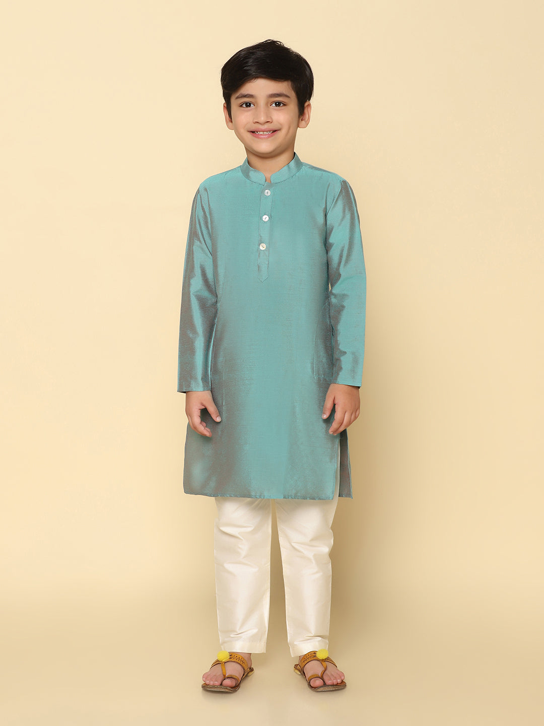 This Kurta Set is just perfect for festivals, or any kind off occasions. Its mandarin collar, style gives a charming look, this classic design is made from Cotton Blend fabric with Solid Dyed patterns and comes in Green colours. Perfect for any occasion.