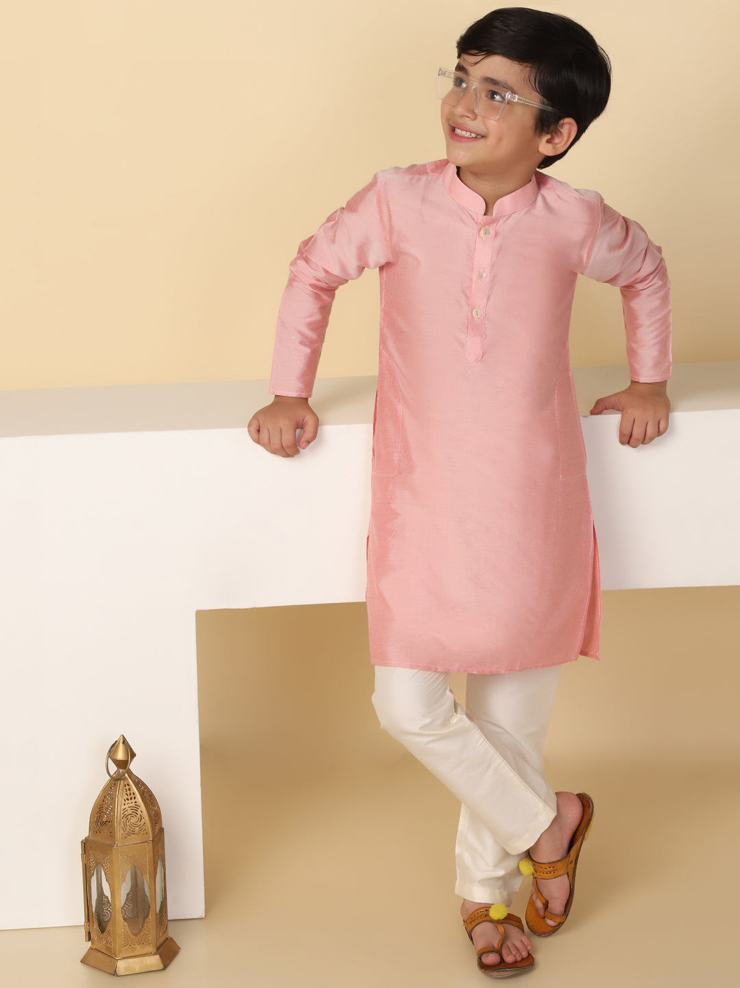This Kurta Set is just perfect for festivals, or any kind off occasions. Its mandarin collar, style gives a charming look, this classic design is made from Cotton Blend fabric with Solid Dyed patterns and comes in Pink colours. Perfect for any occasion.