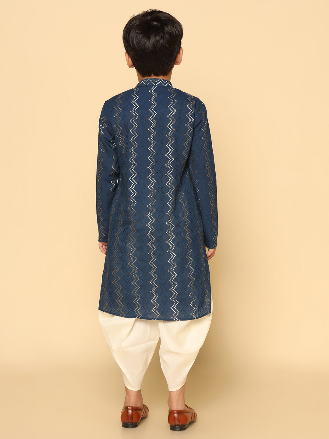 The Kisah kurta Set is ideal for Kids Boy looking for stylish yet comfortable attire. Crafted from cotton blend fabric, Blue color, stylish pattern, and comfortable fit make it perfect for festive wear.