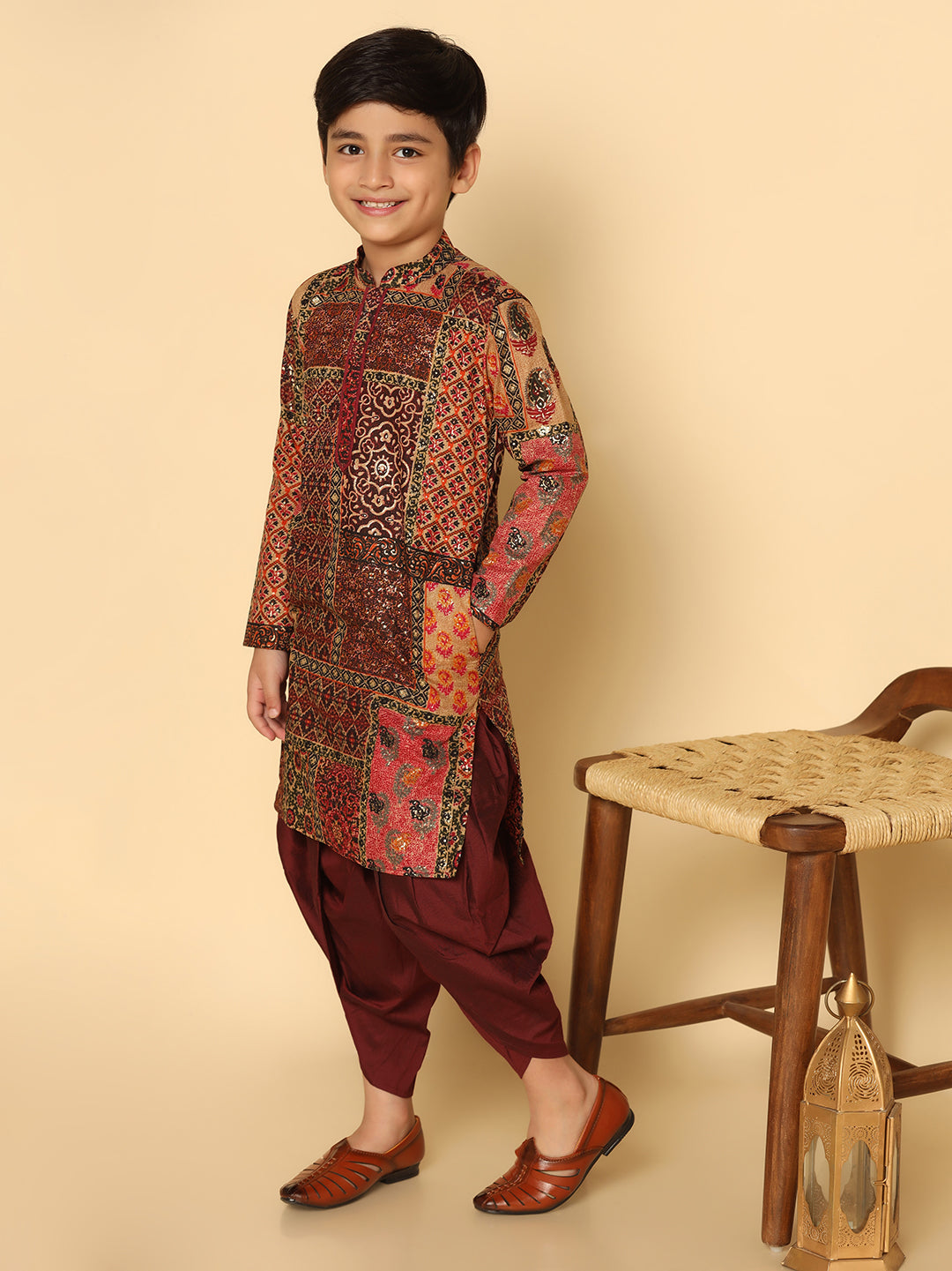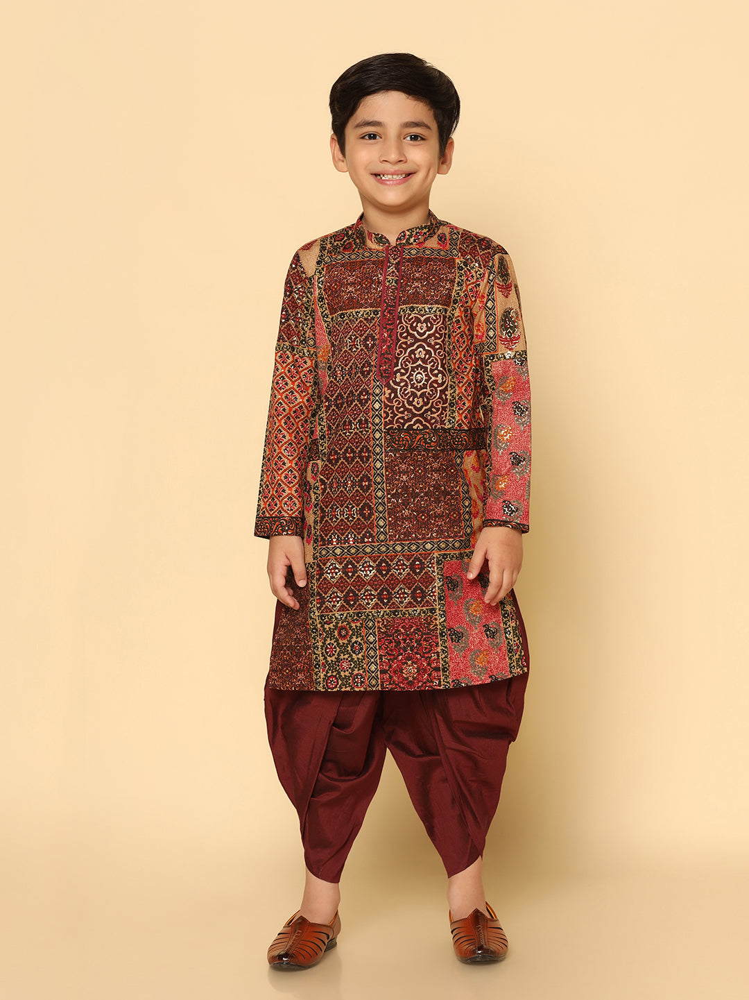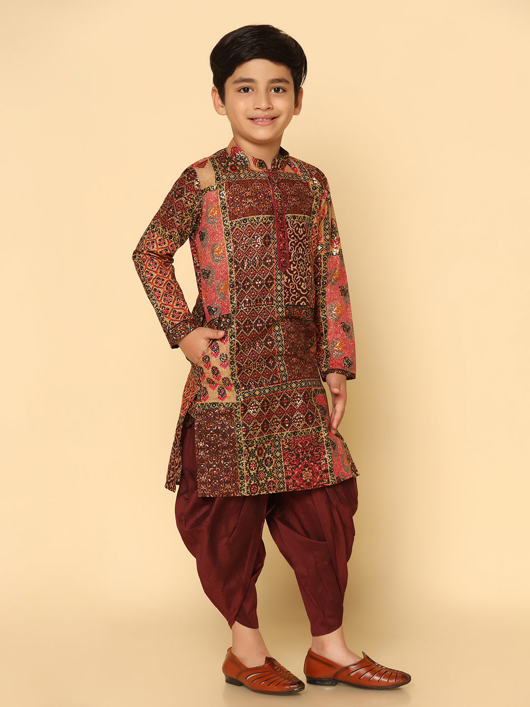 The Kisah kurta Set is ideal for Kids Boy looking for stylish yet comfortable attire. Crafted from cotton Blend fabric, Multi color, stylish pattern, and comfortable fit make it perfect for festive wear.