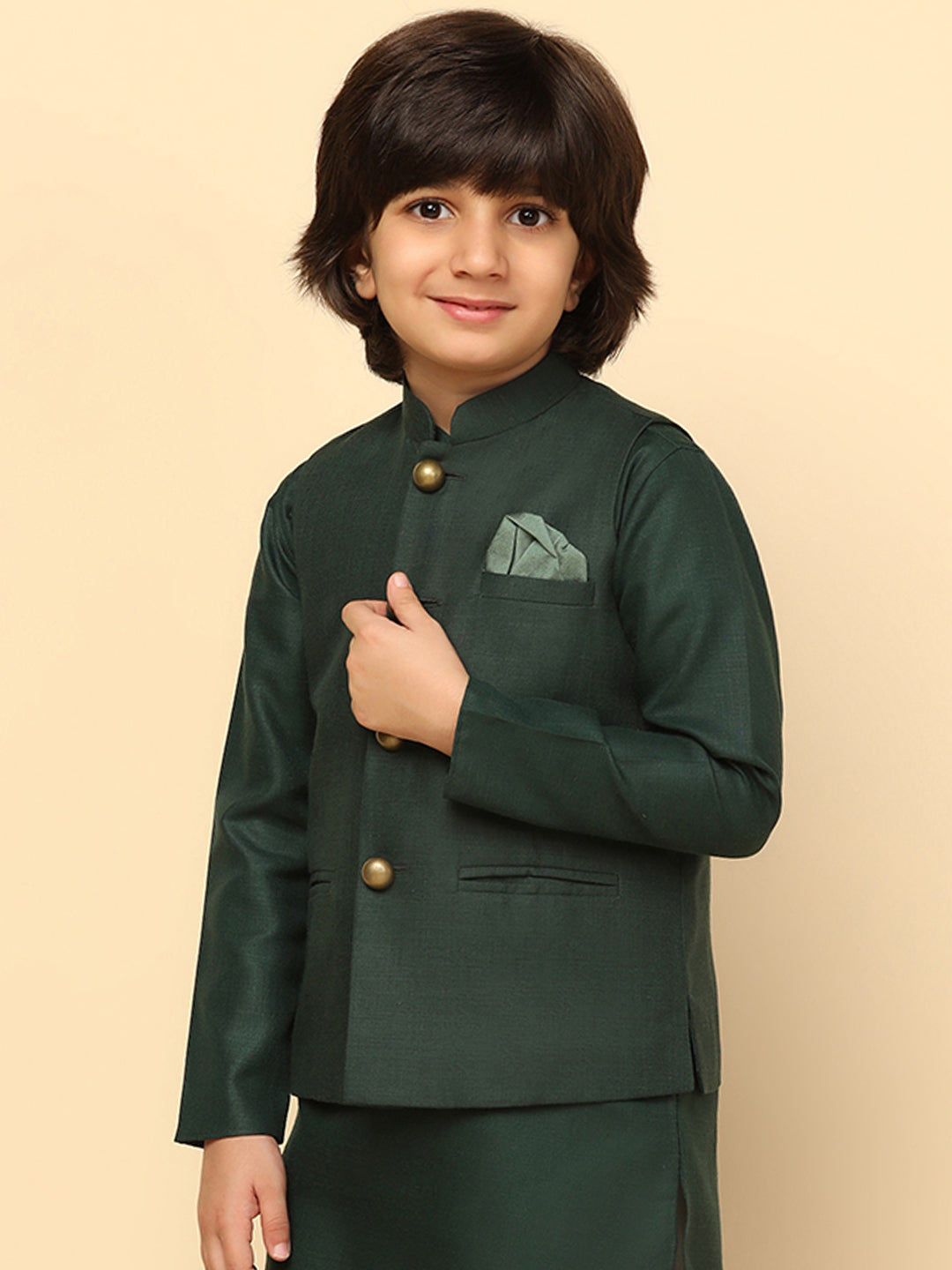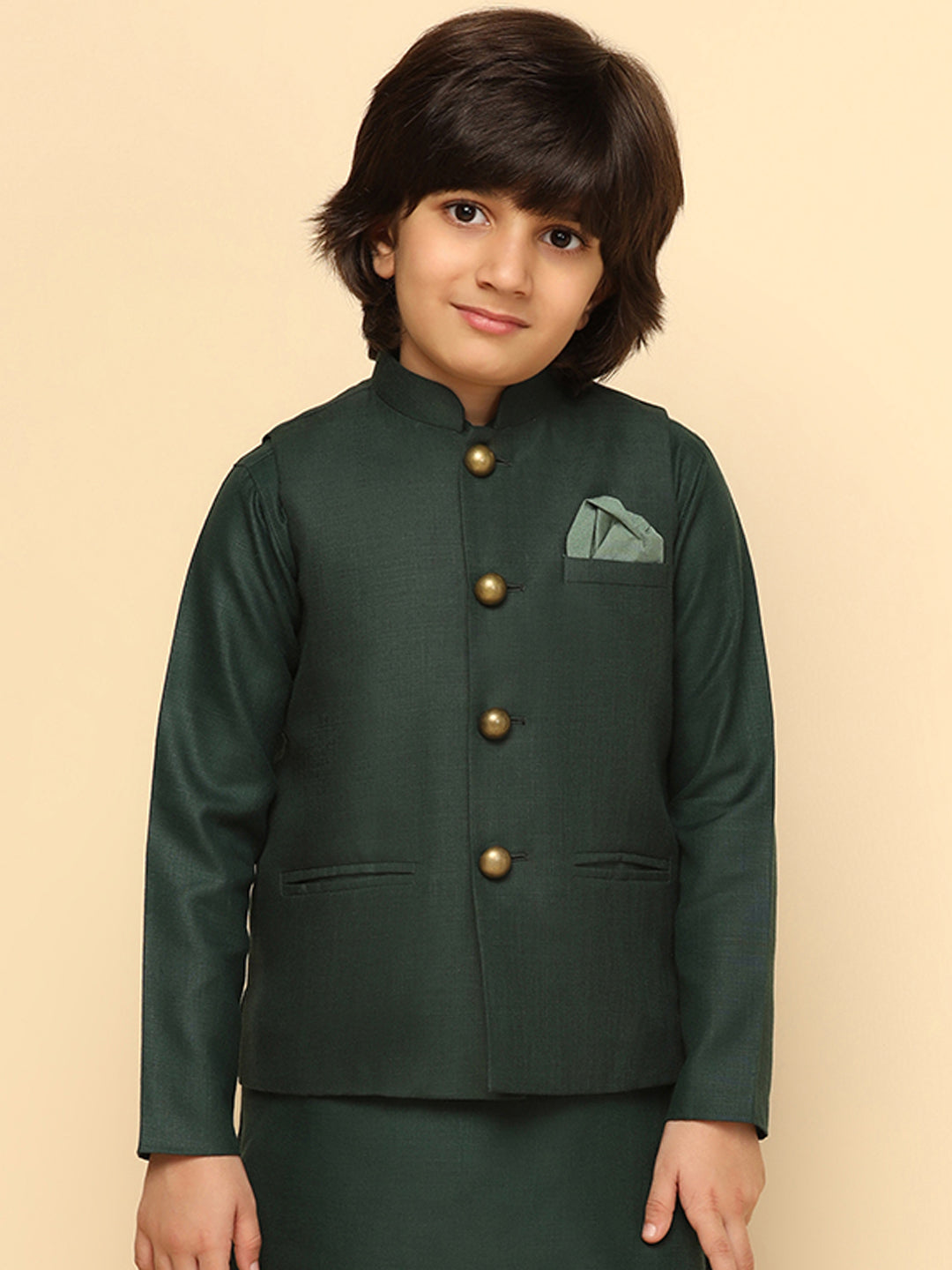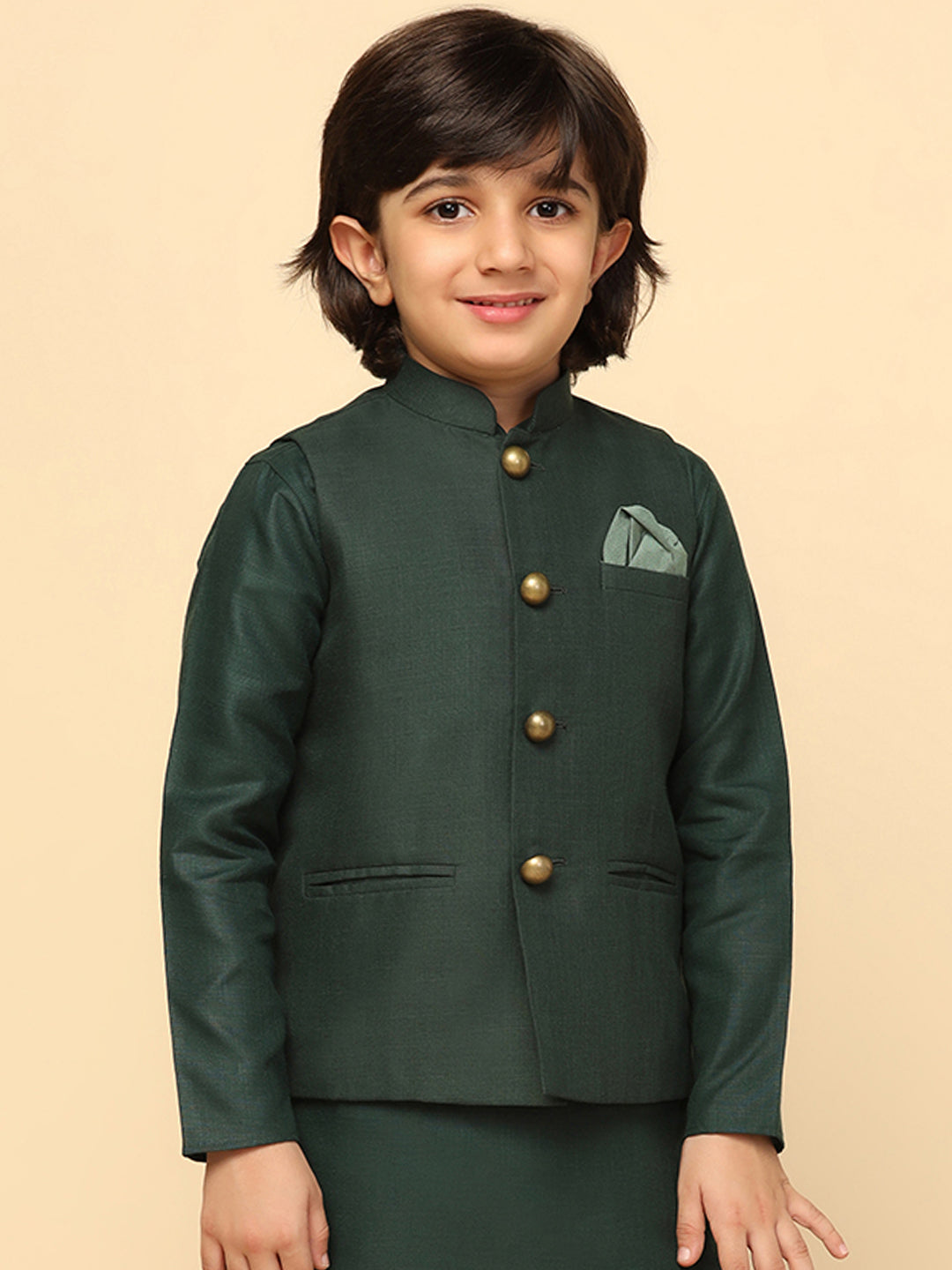 The Nehru Jacket is ideal for Kids Boy looking for stylish yet comfortable attire. Crafted from Blended Fabric fabric, Green , stylish pattern, and comfortable fit make it perfect for festive wear.