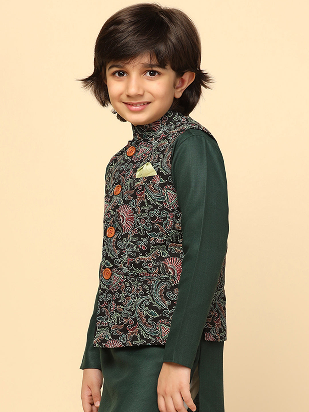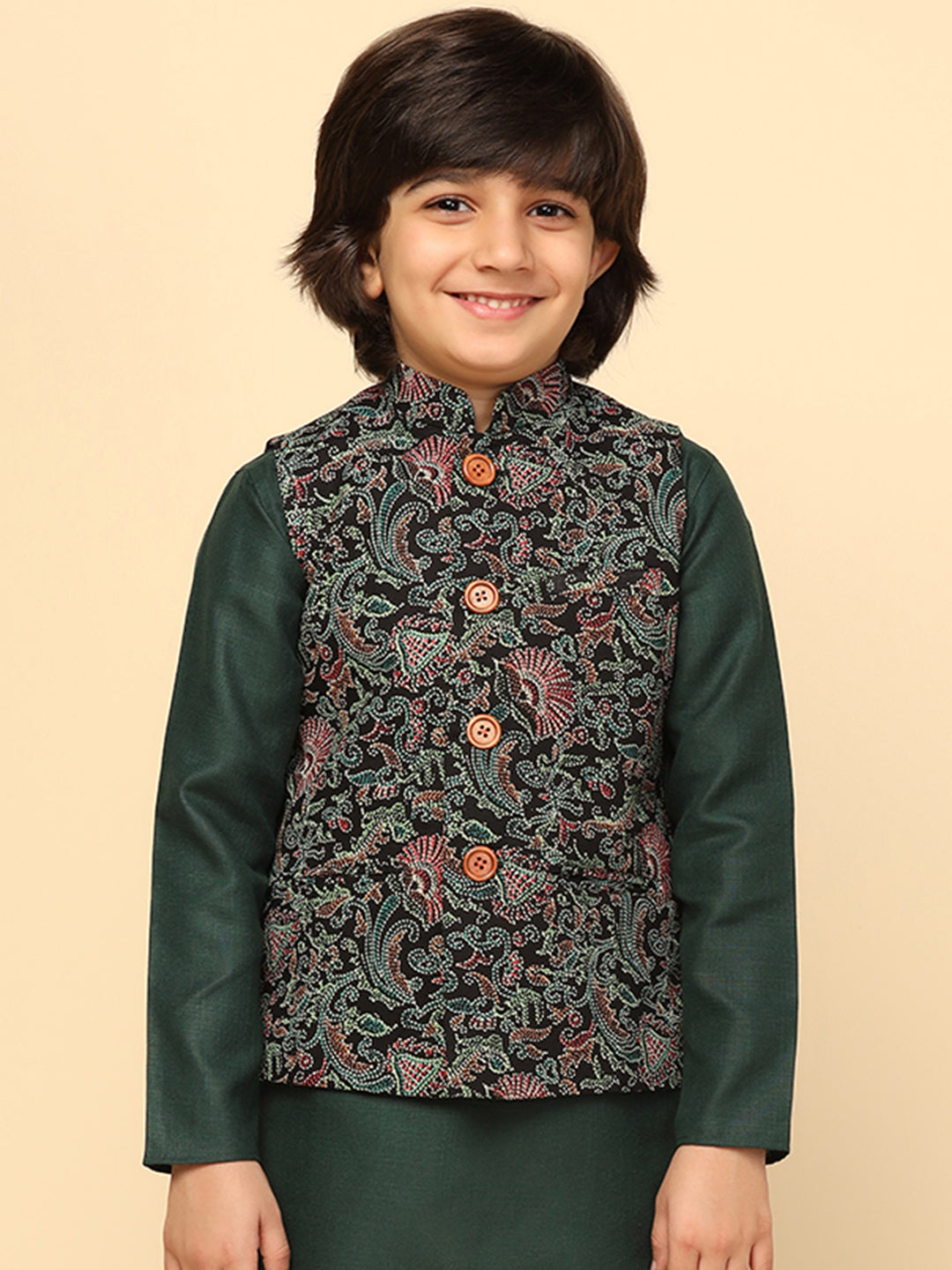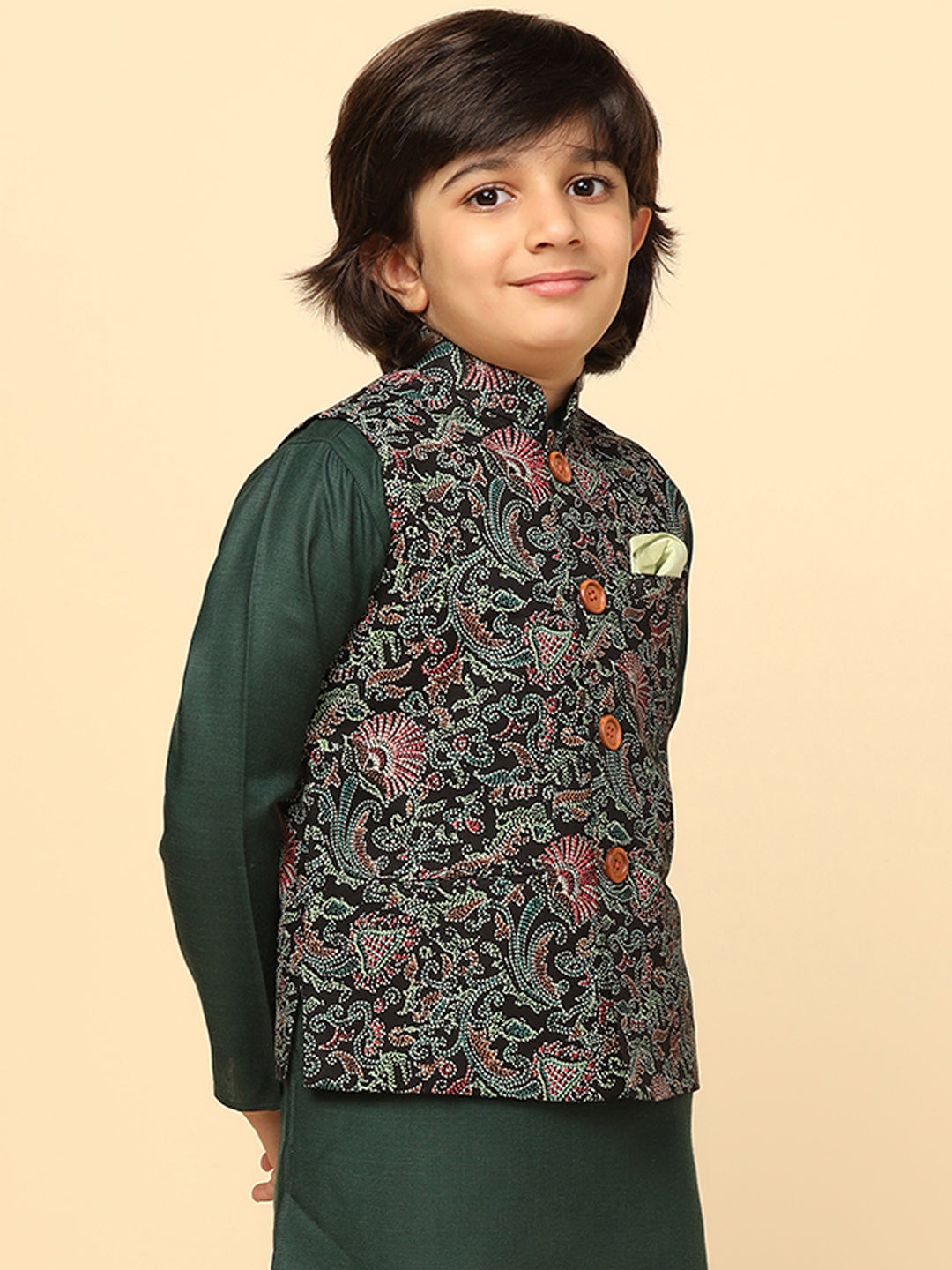 The Nehru Jacket is ideal for Kids Boy looking for stylish yet comfortable attire. Crafted from Blended Fabric fabric, Black , stylish pattern, and comfortable fit make it perfect for festive wear.