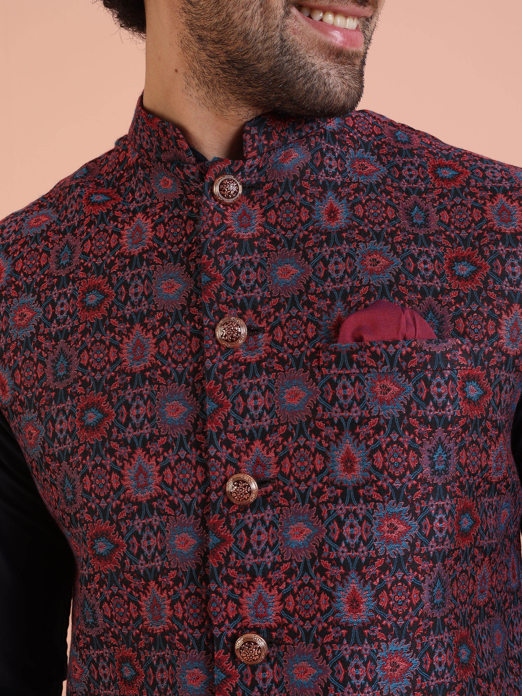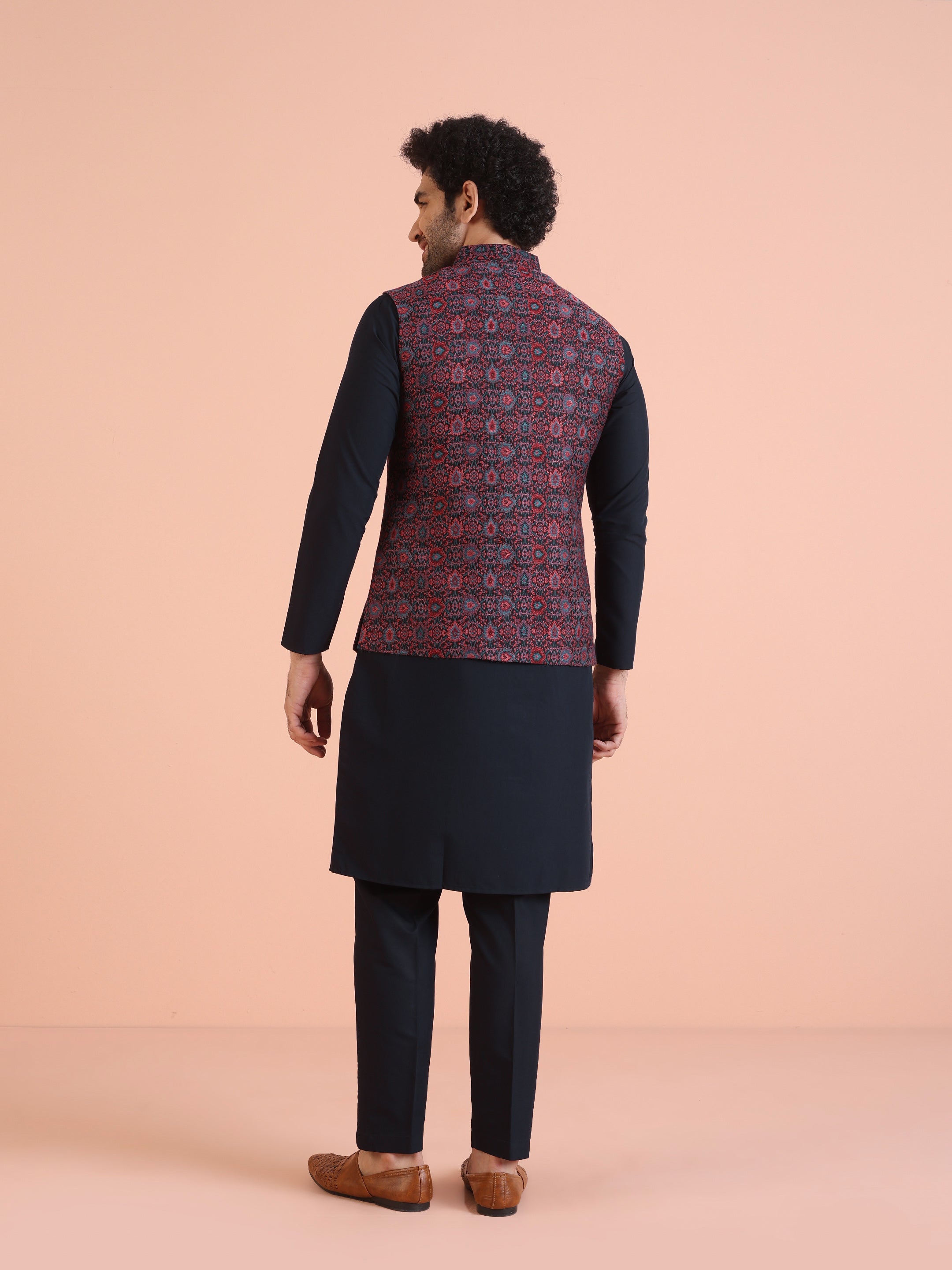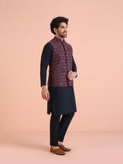 Multi-Coloured Silk Textured Nehru Jacket Kurta Set
