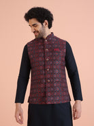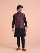 Multi-coloured silk blend kurta jacket trouser set with textured motifs Nehru jacket, perfect festive & wedding ethnic wear for men.