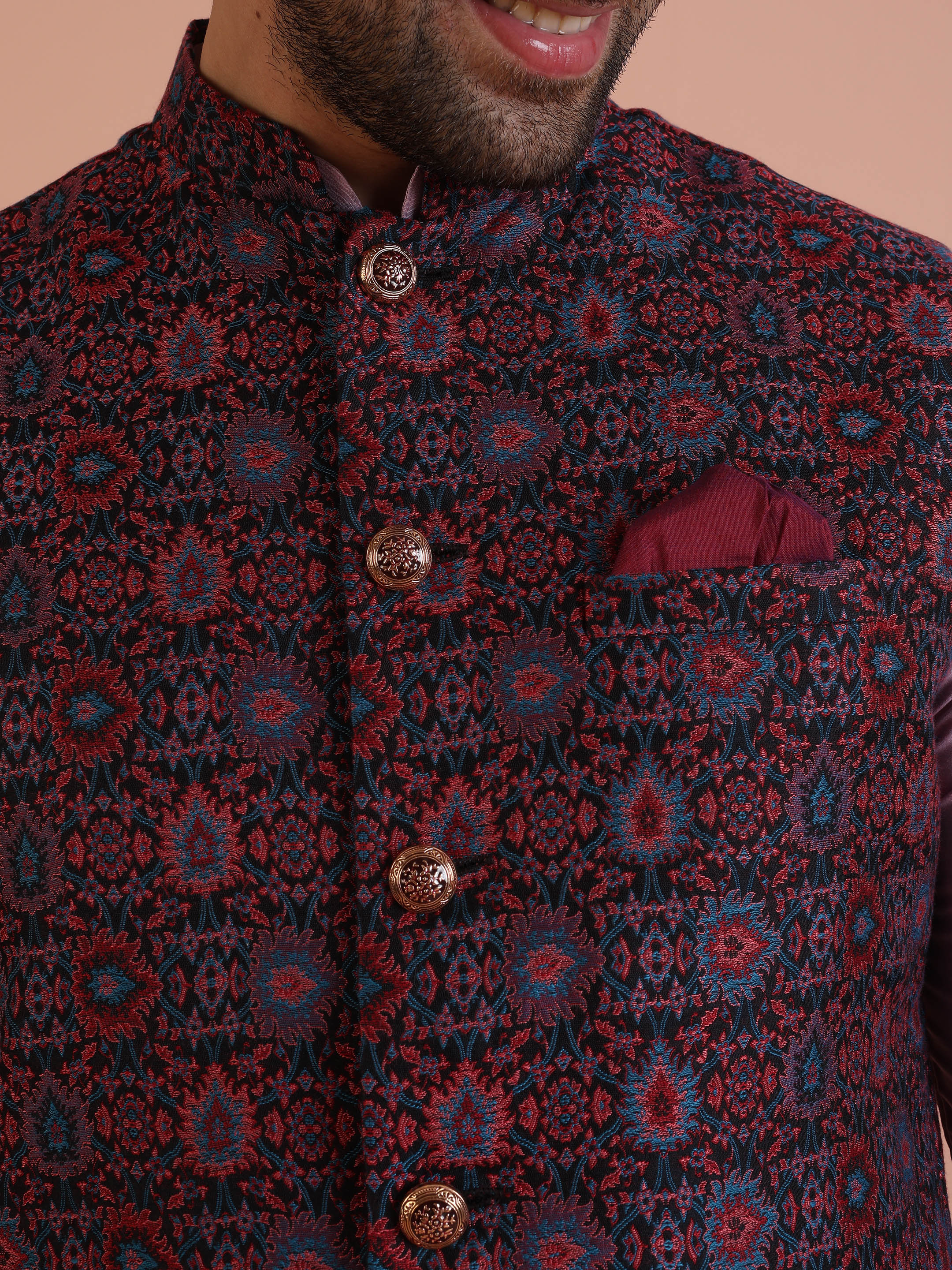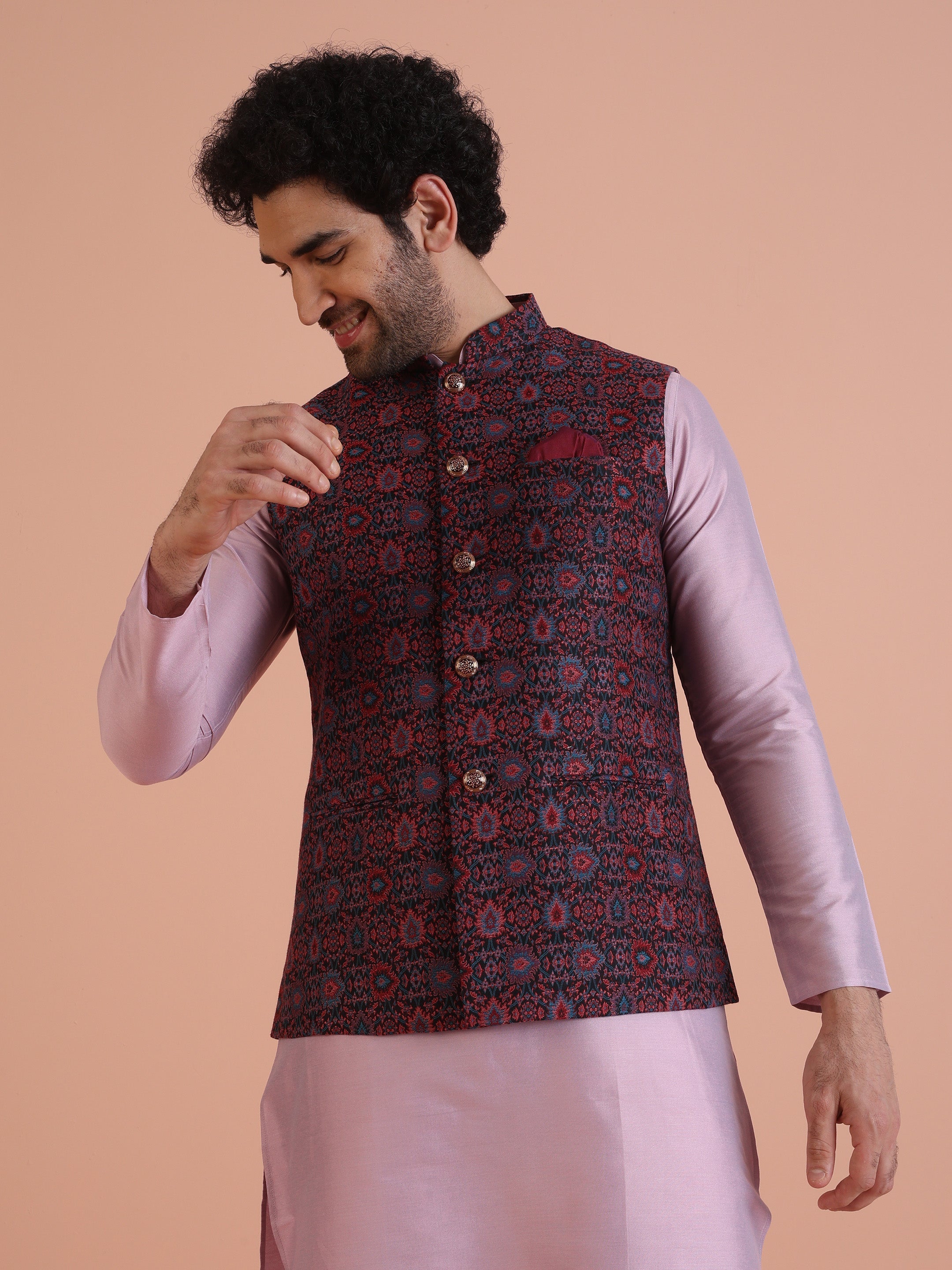 Multi-Coloured Textured Nehru Jacket Kurta Trouser