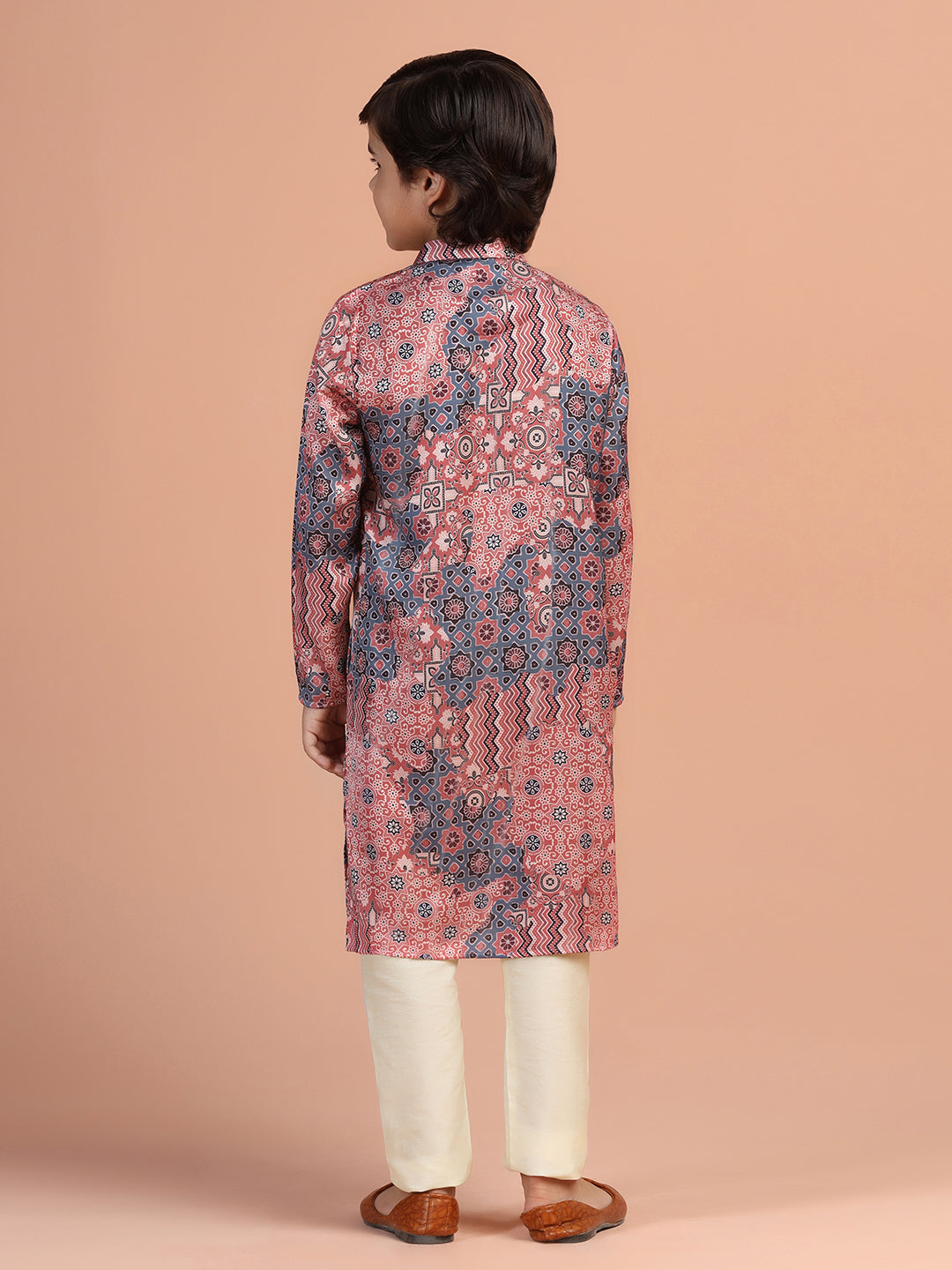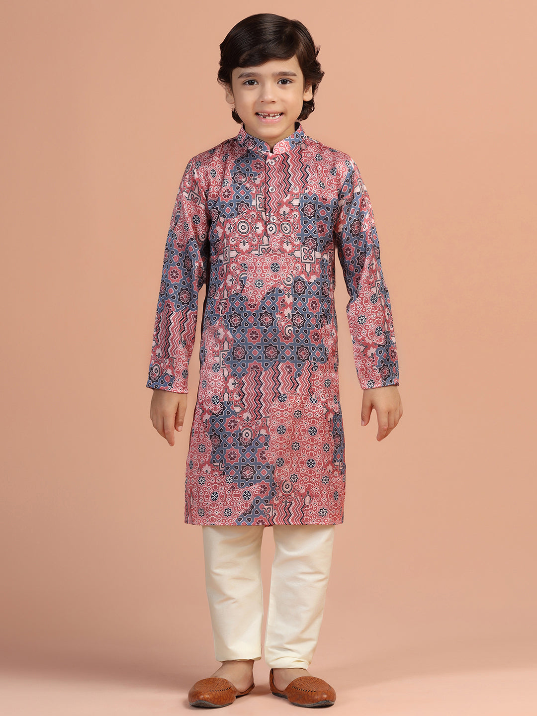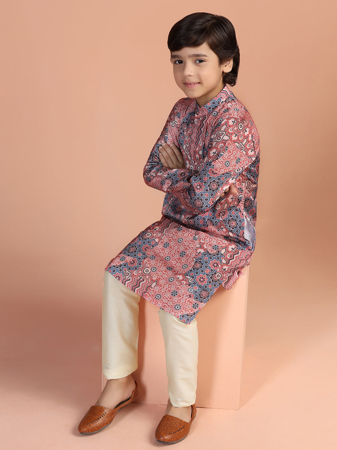 Vibrant multicolor geometric printed kurta for boys in soft cotton blend – perfect for festive occasions and weddings.