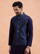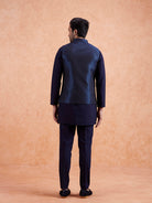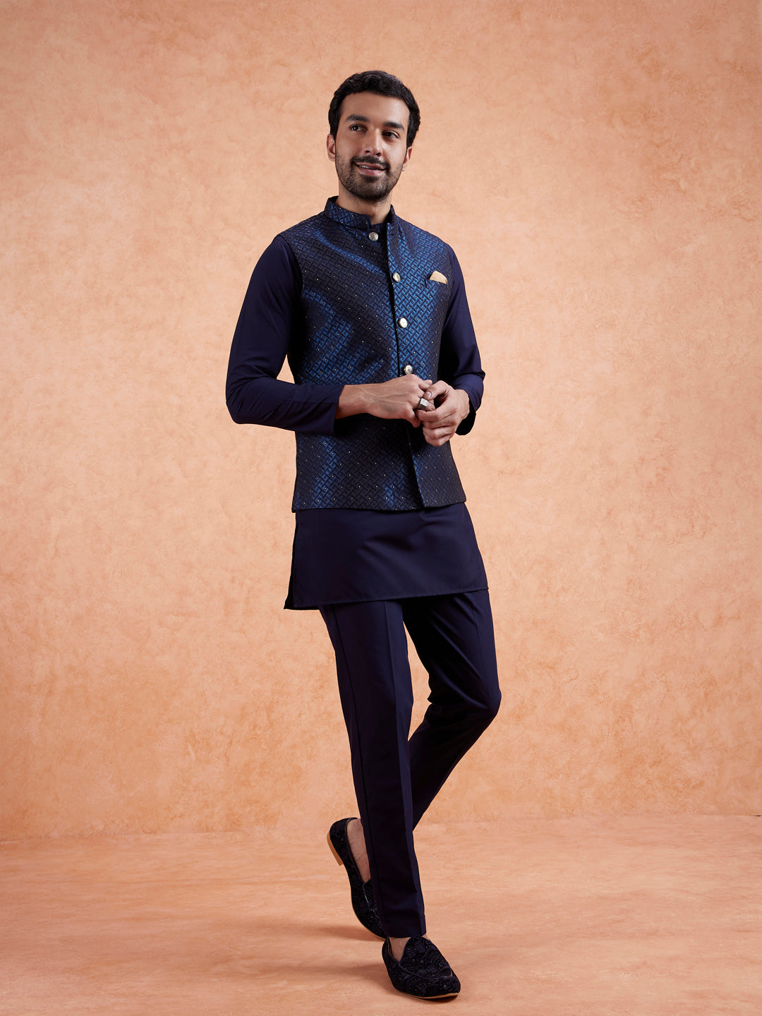 Turquoise Silk Blend Jacquard Mid Kurta Jacket Trouser Set, Perfect festive ethnic wear for men, ideal festive and casual occasions.