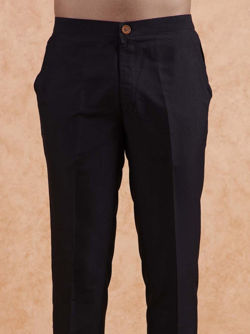 Black Cotton Blend Printed Mid Kurta Jacket Trouser Set, Perfect festive ethnic wear for men, ideal festive and casual occasions.