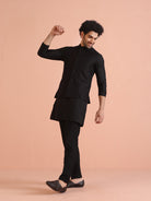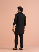 Black Jacquard Woven Jacket Kurta Trouser Set