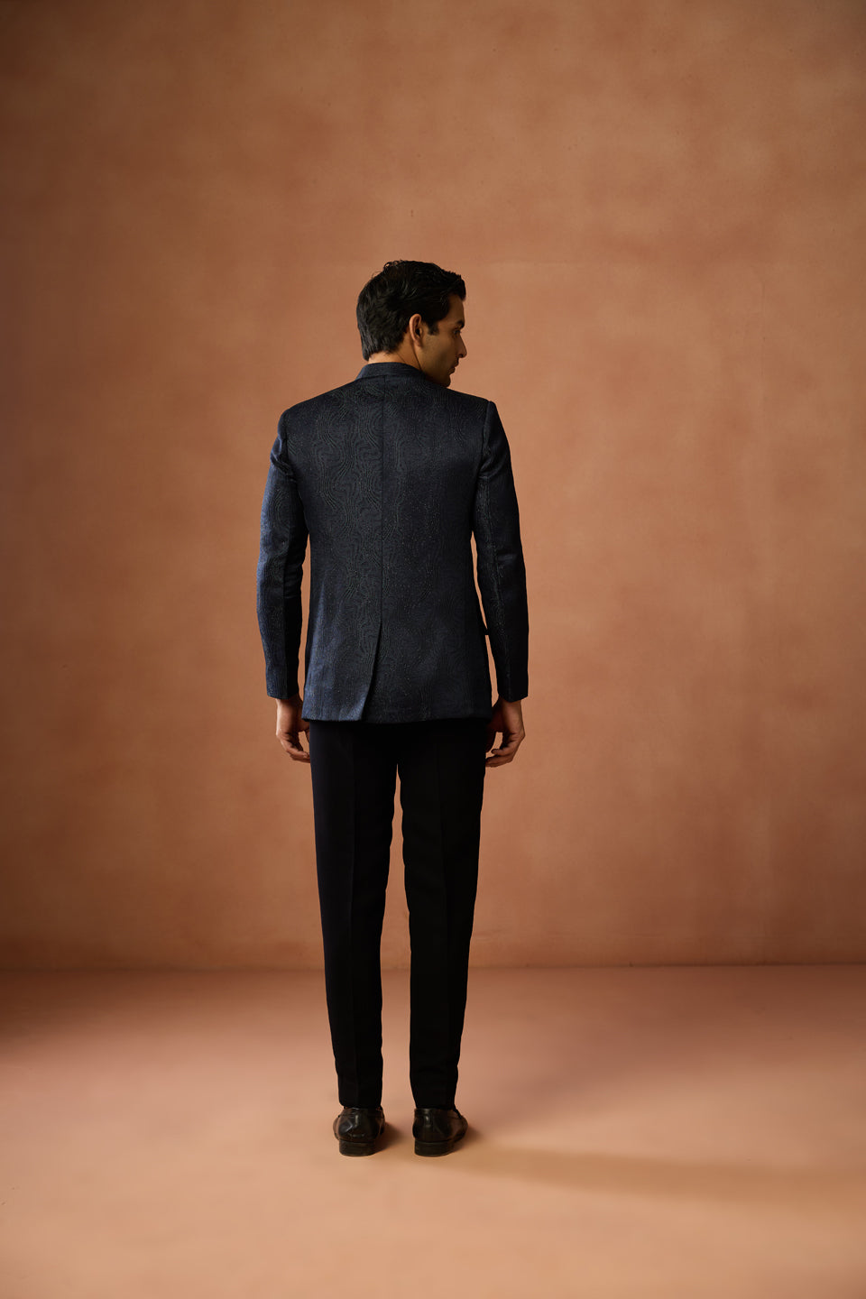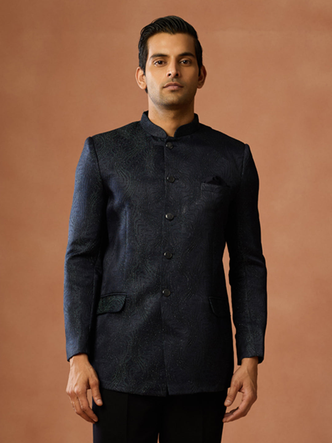 Blue Poly Silk Jacquard Bandhgala, Perfect festive ethnic wear for men, ideal festive and casual occasions.