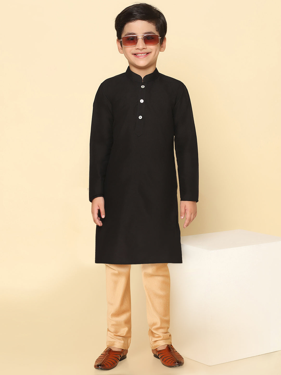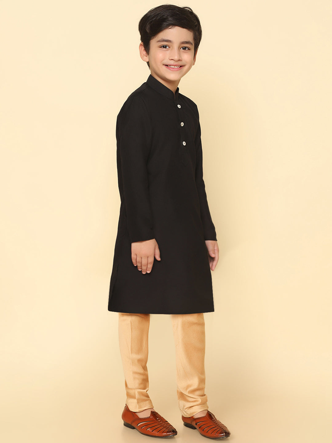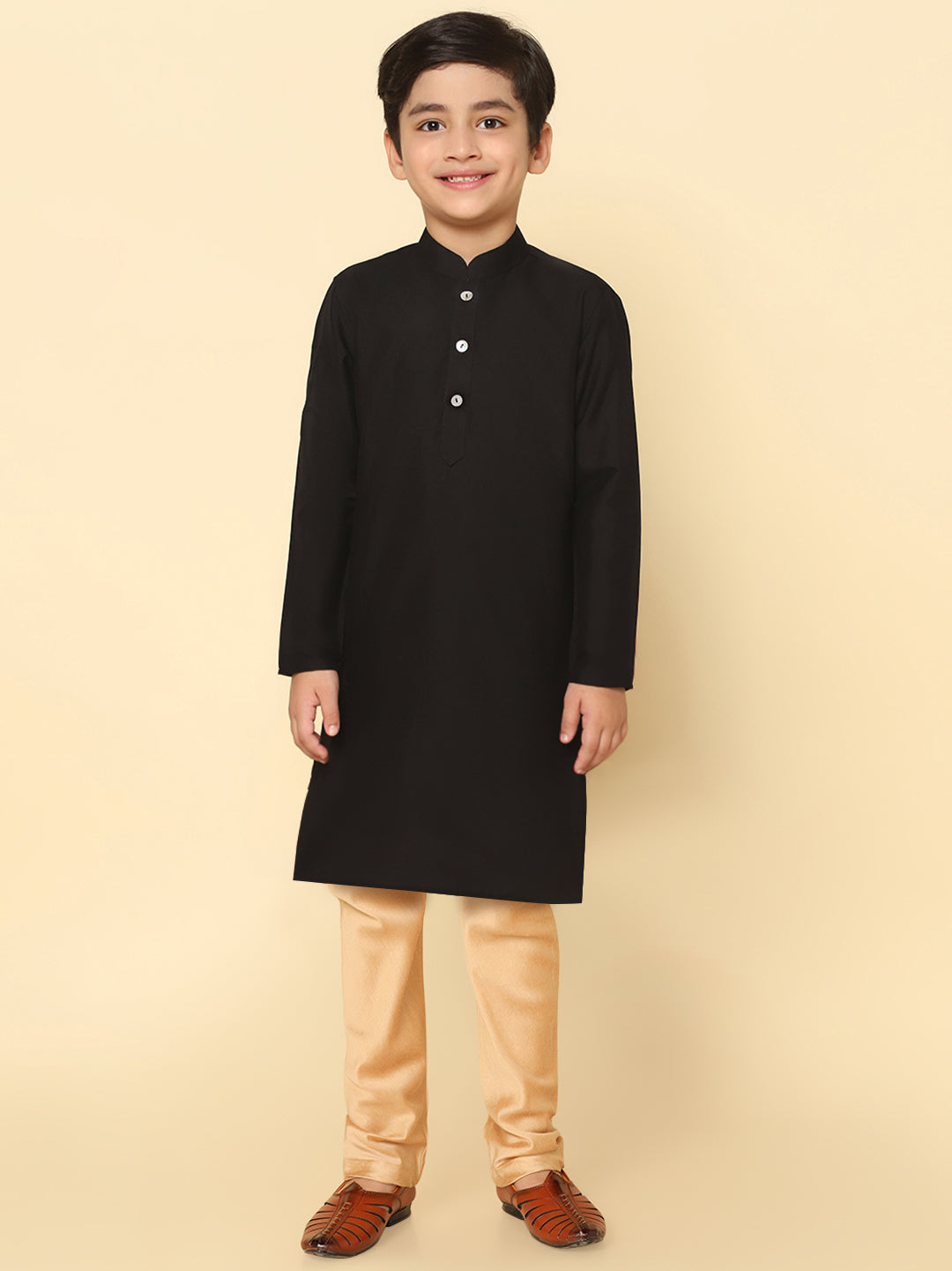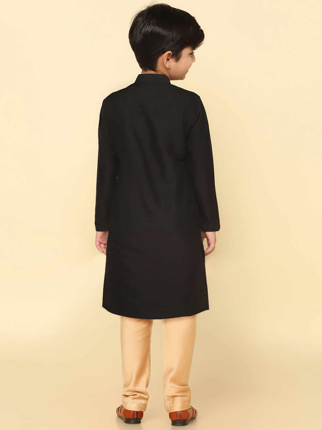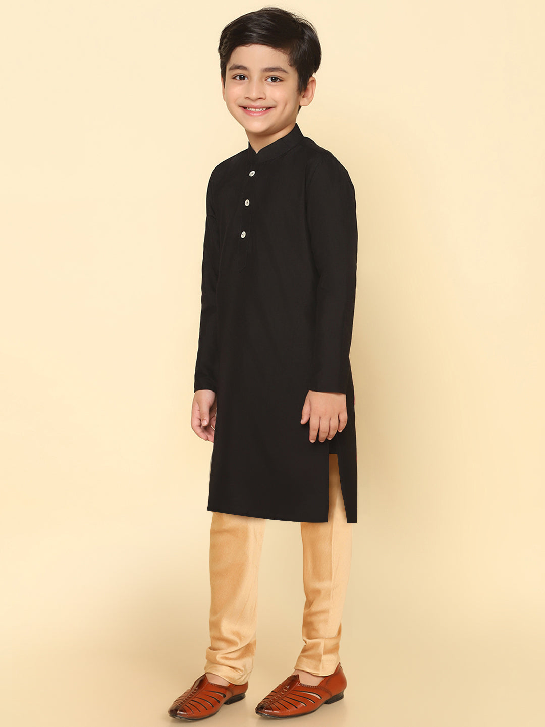 Boy's Black Cotton Blend Solid Dyed Kurta Pyjama Set, Perfect festive ethnic wear for boy, ideal festive and casual occasions.