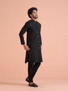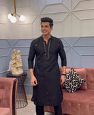 Black Cotton Silk Mirror Work Kurta