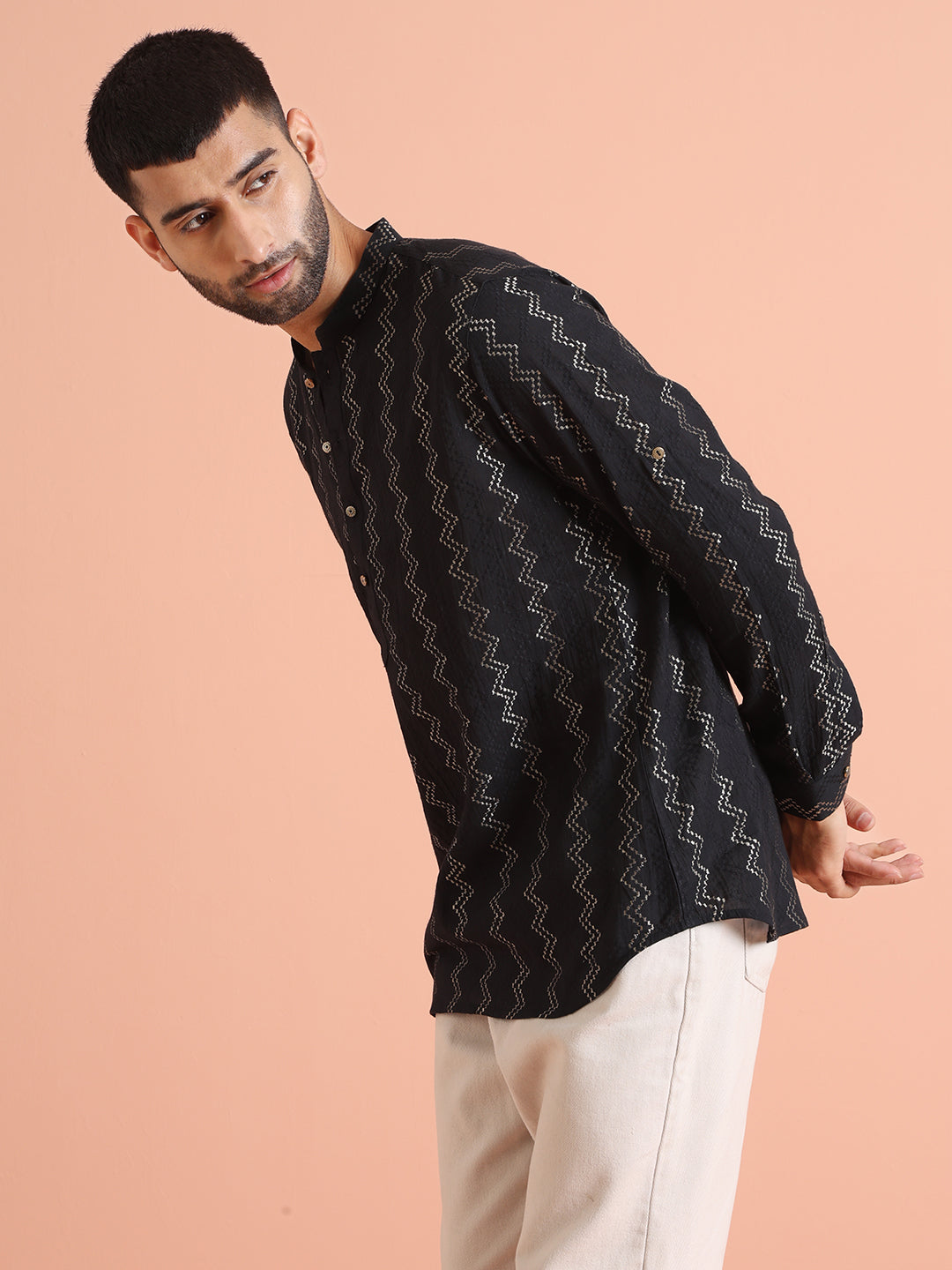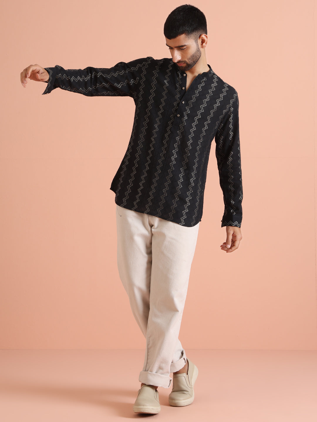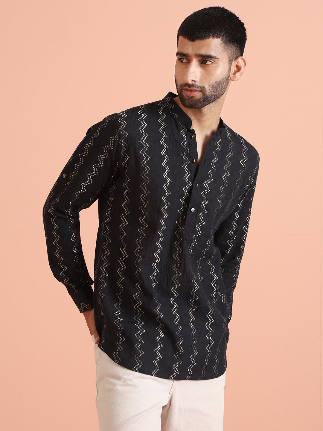 This Black Short Kurta is a yes for all your casual occasions. The Short Kurta is of Cotton Blend which adds on to the defined and modern look.