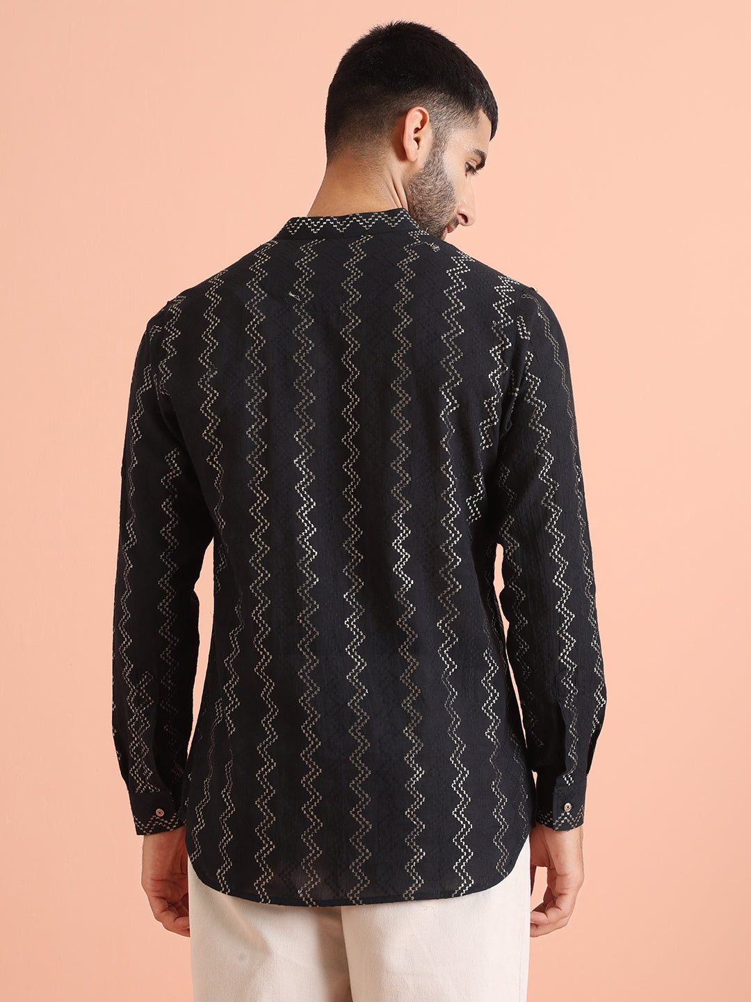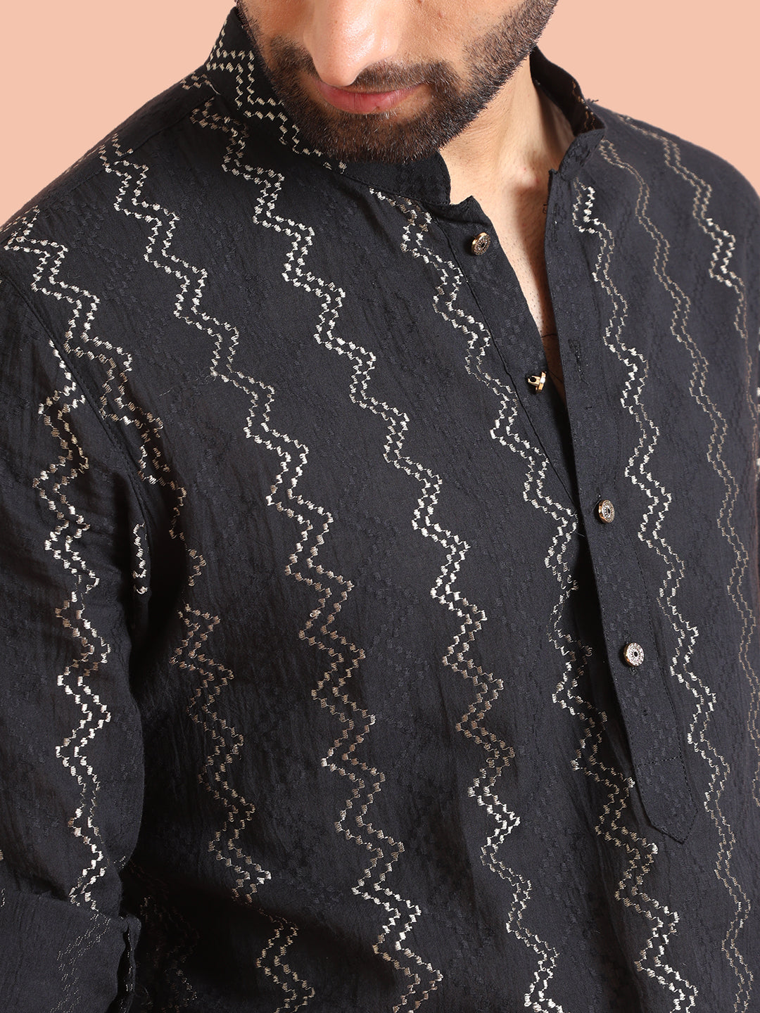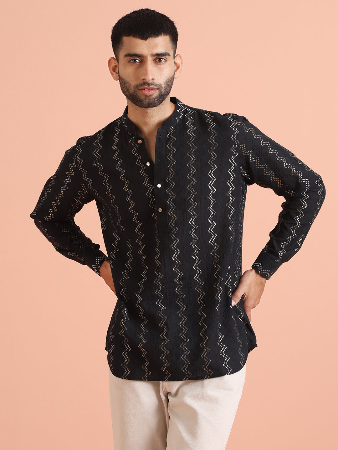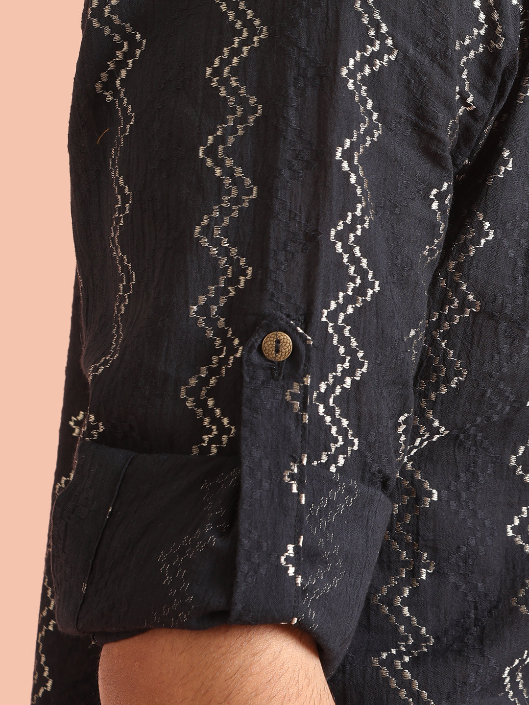 This Black Short Kurta is a yes for all your casual occasions. The Short Kurta is of Cotton Blend which adds on to the defined and modern look.