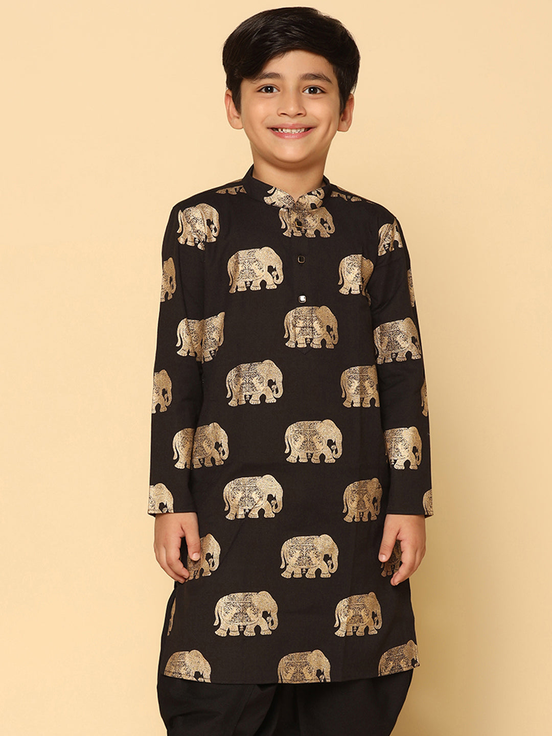 Featuring a printed design, this black cotton blend kurta is both stylish and comfortable. A regular fit makes it a great pick for casual outings.