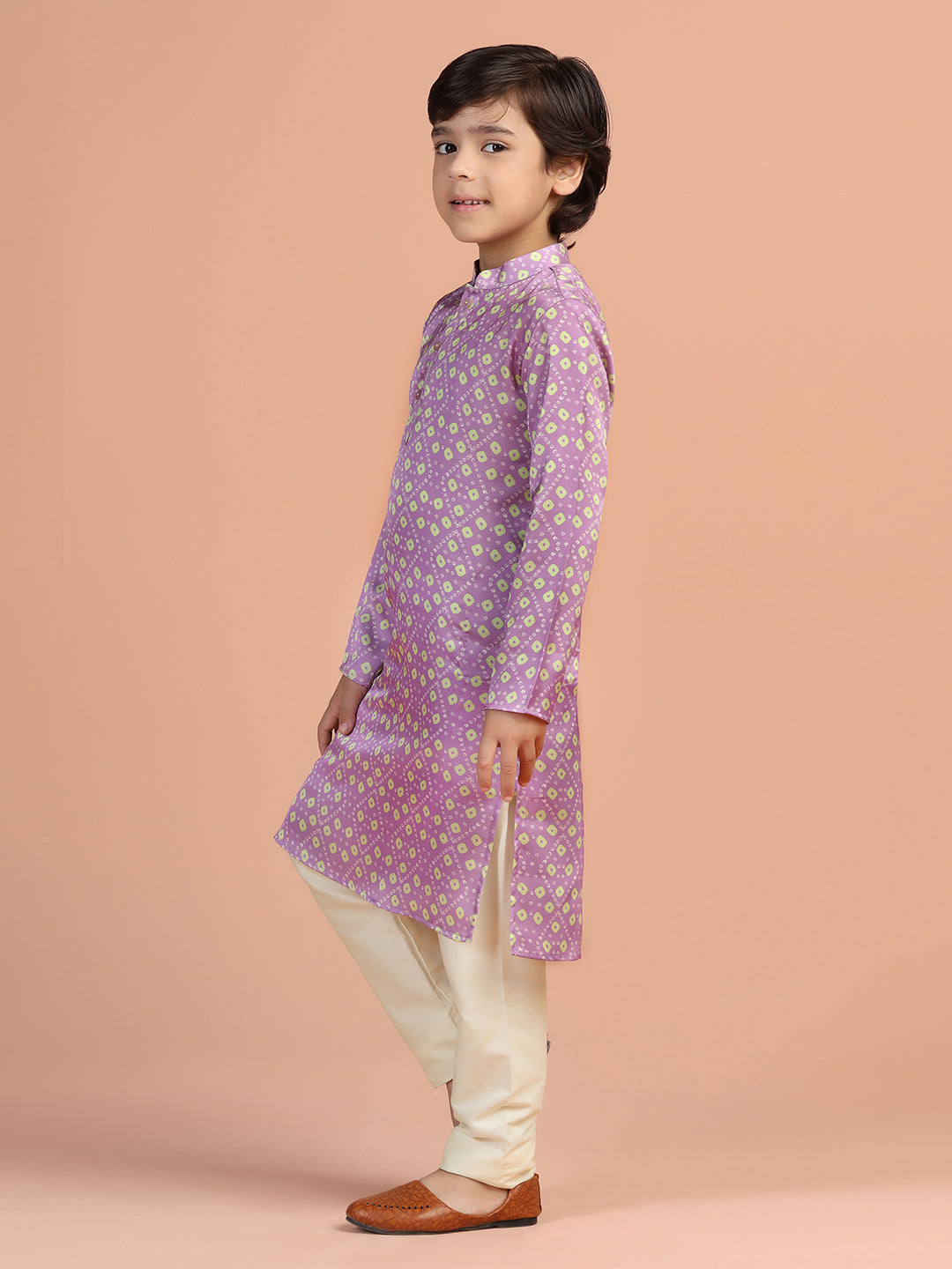 Lavender self-design cotton blend kurta for boys – elegant, breathable, and festive-ready ethnic wear from Kisah Kids.