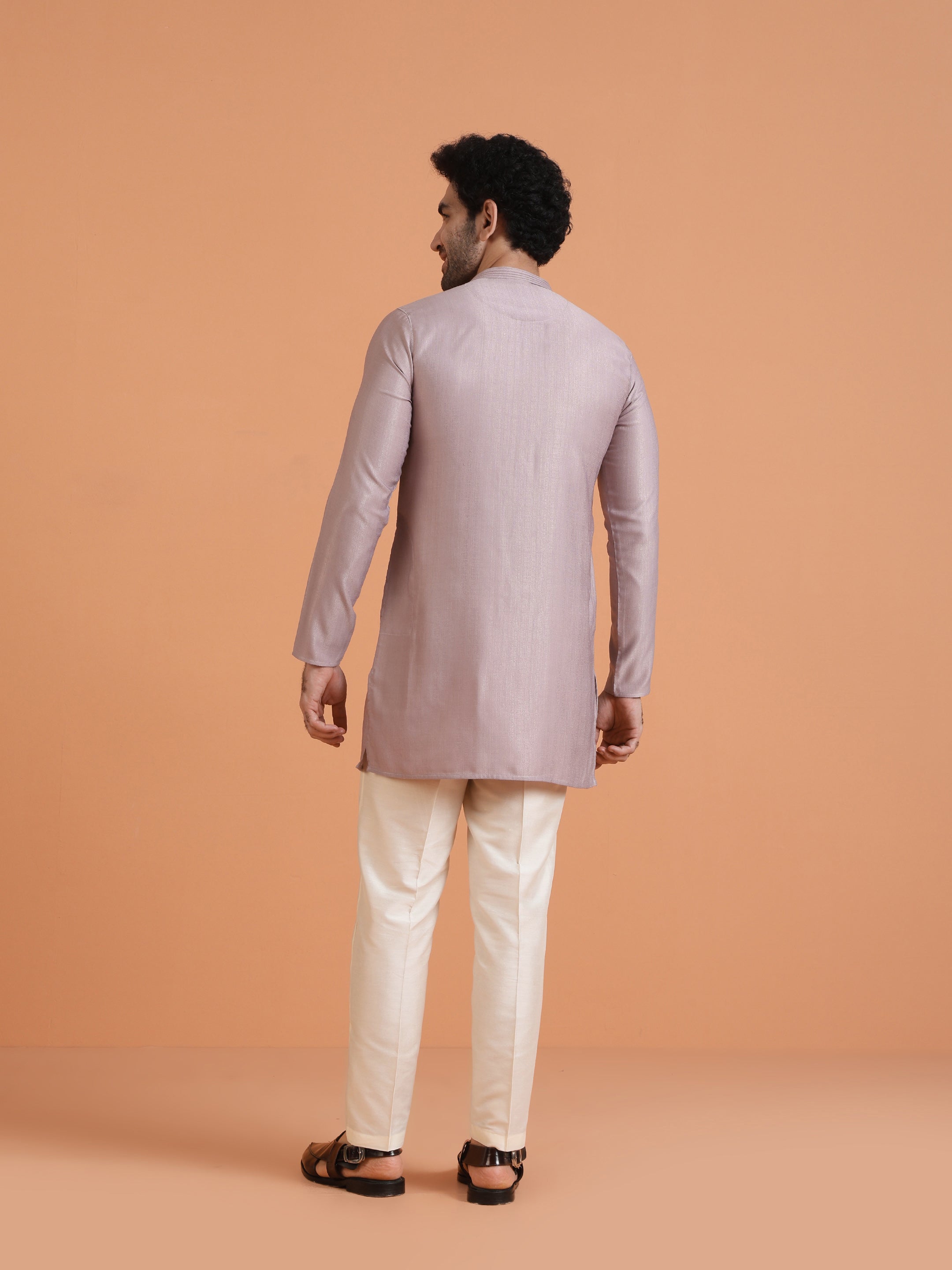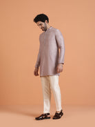 Light Lavender Textured Kurta Set with Cream Trousers Perfect festive outfit with elegant design, breathable comfort, and sophisticated ethnic appeal.