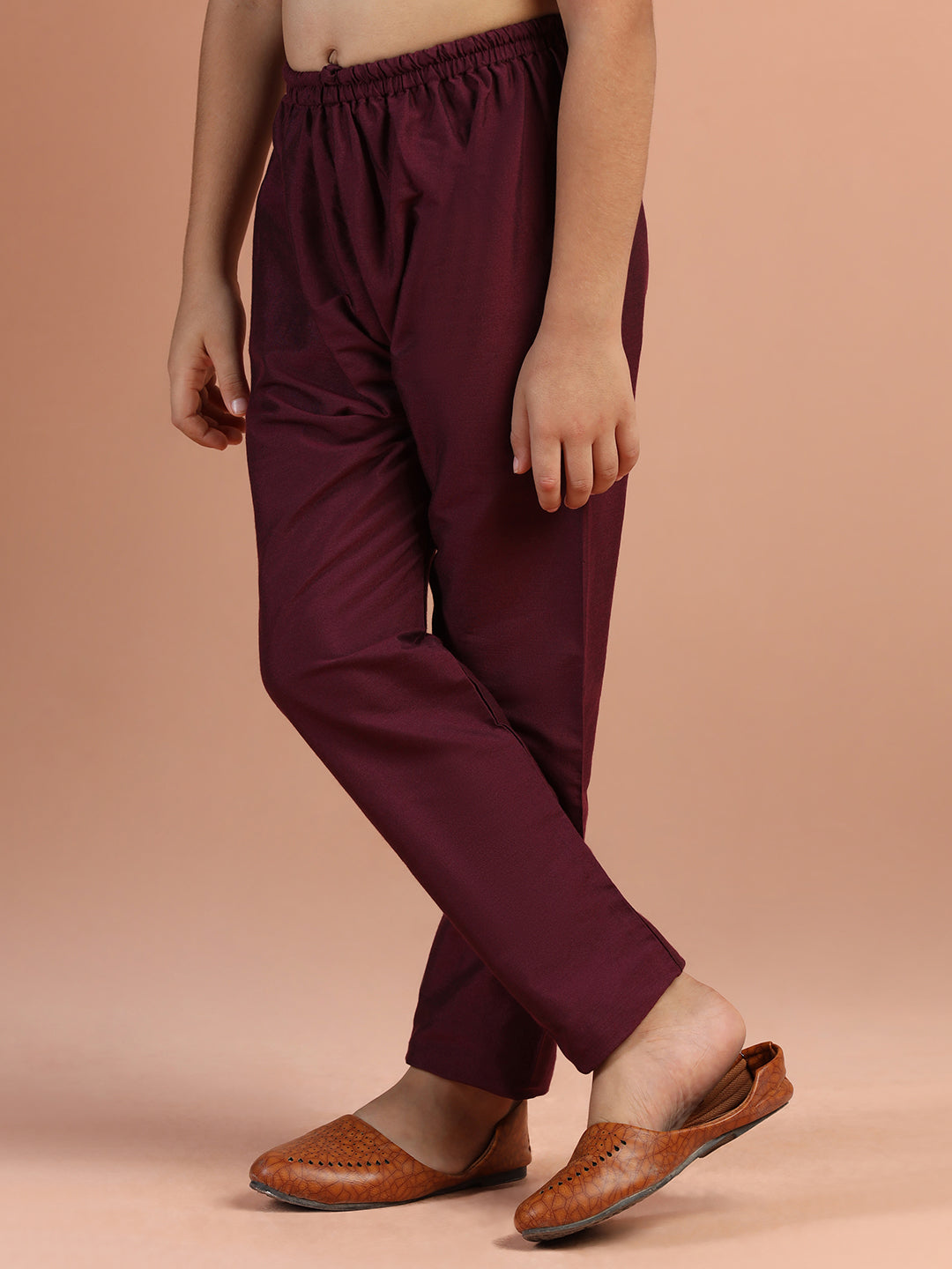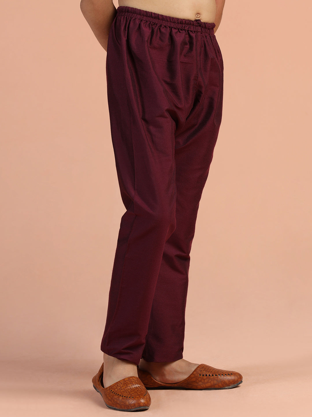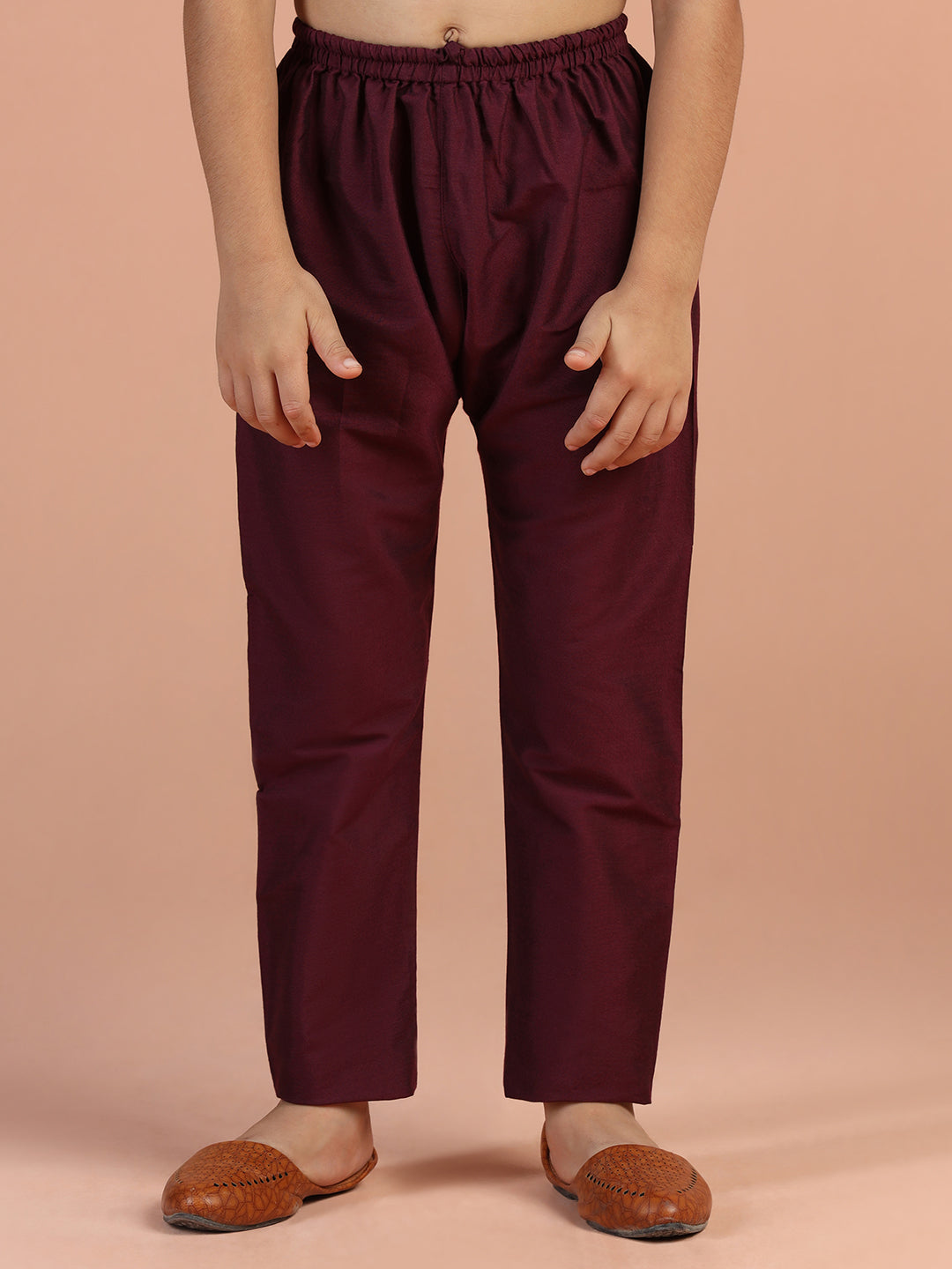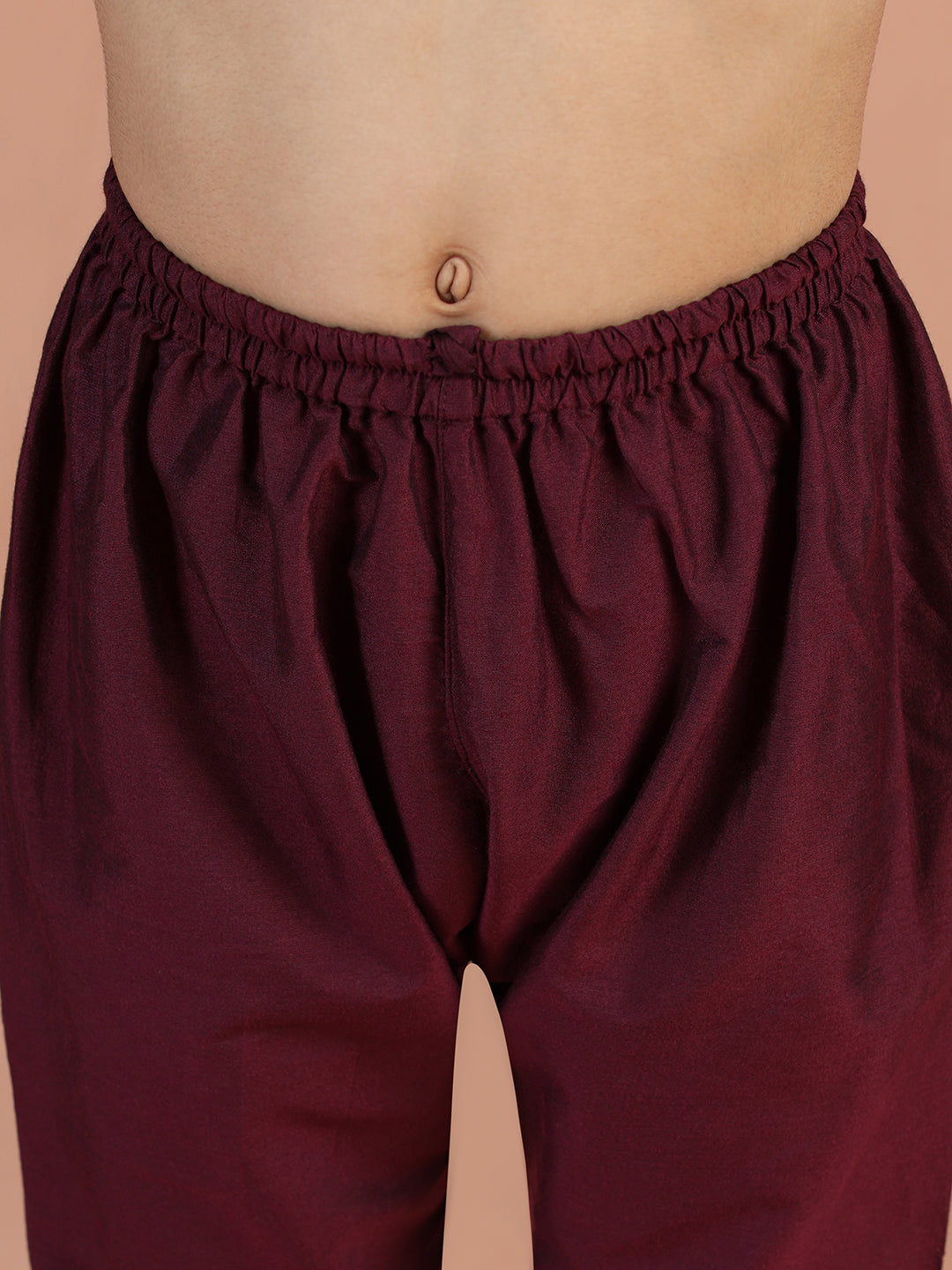 Maroon cotton blend pyjama for boys – soft, comfortable, and easy to pair with any ethnic kurta for festive looks.